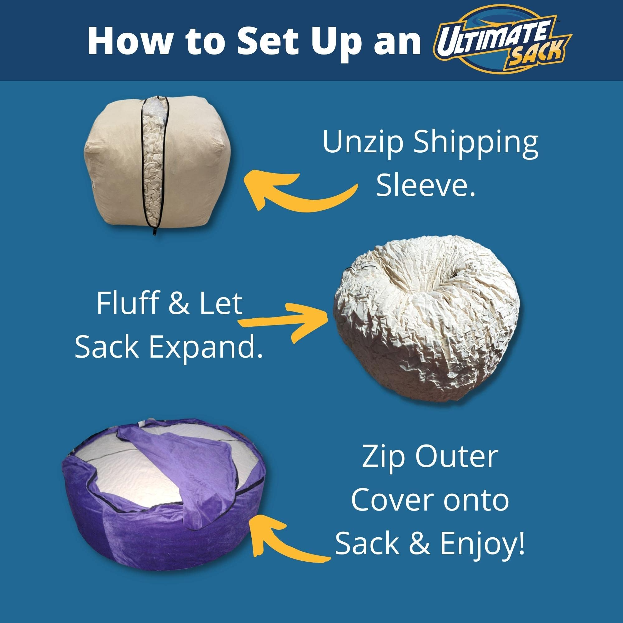 Answer:All you have to do is zipper the cover onto the sack .