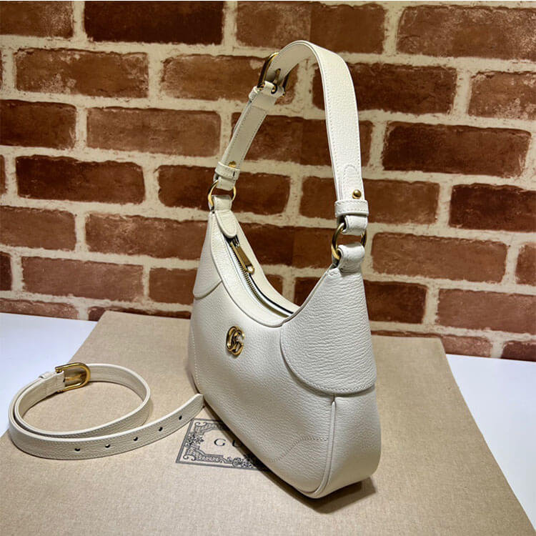 1:1 Mirror Quality Replica Gucci Aphrodite Small Shoulder Bag Style:731817 AABE9 9022 White soft leather Shiny gold-toned hardware Moire lining Double G Adjustable shoulder strap with 21.6″ drop Removable chain strap with 10.2″ drop Zip closure Small size: W9.9″ x H7.5″ x D2.8″