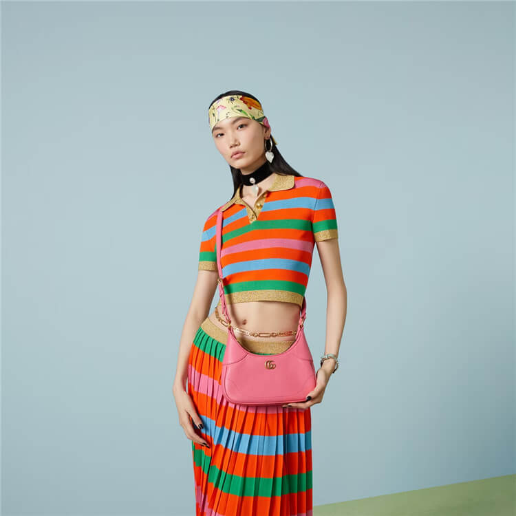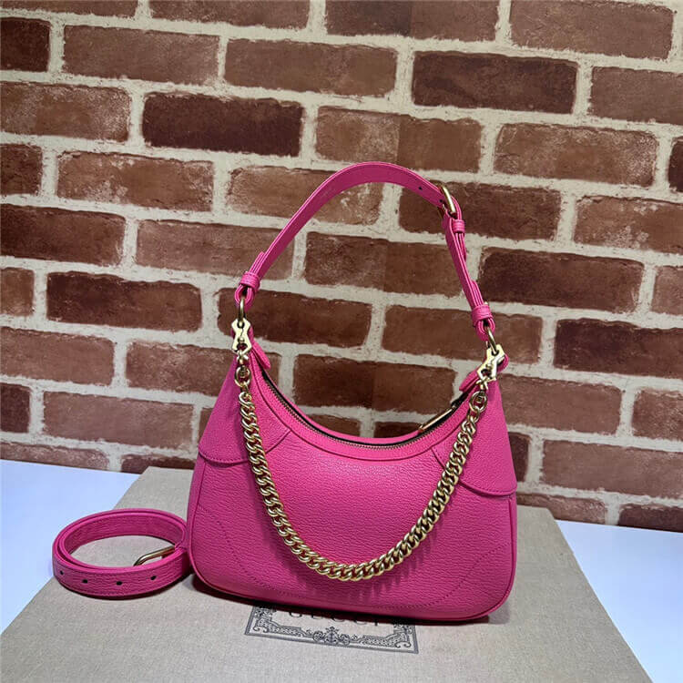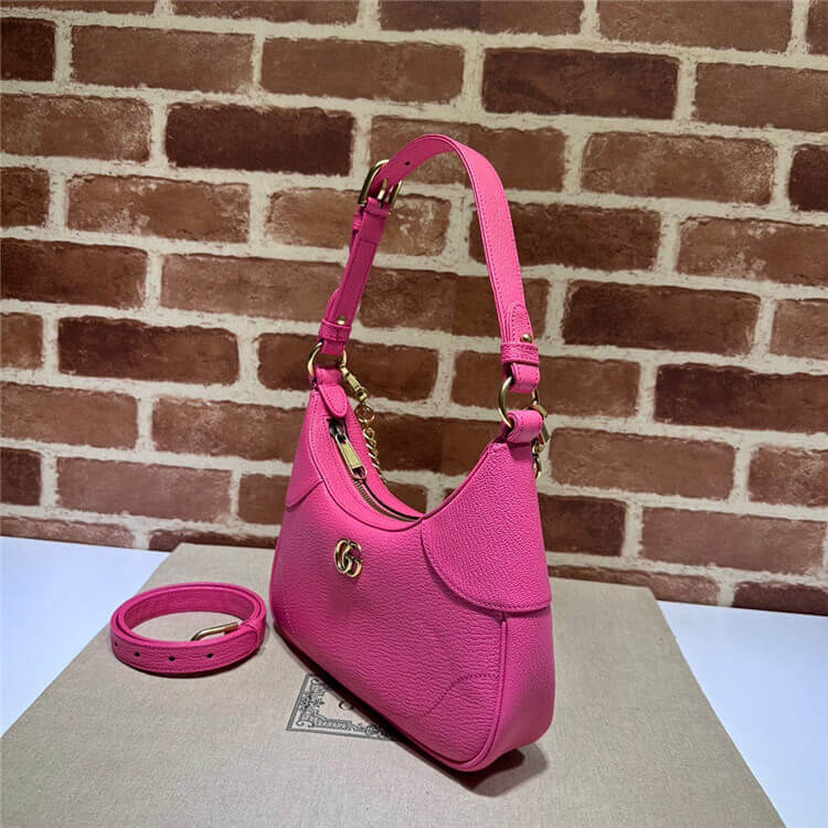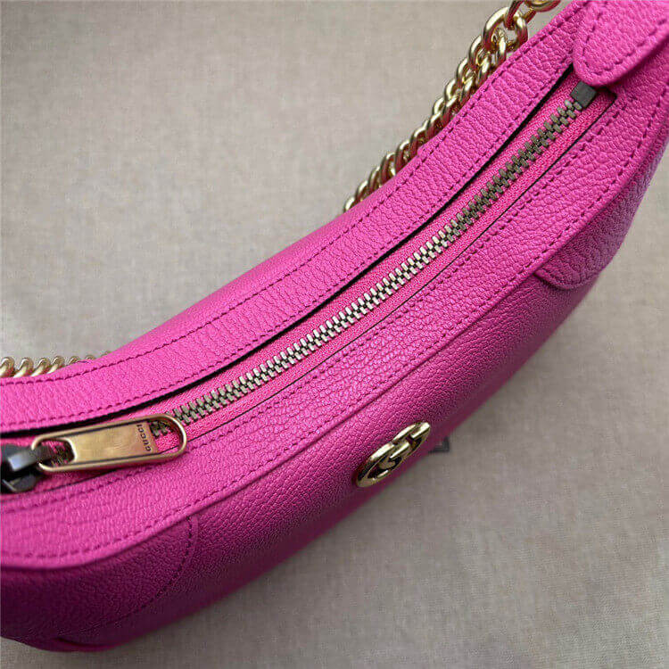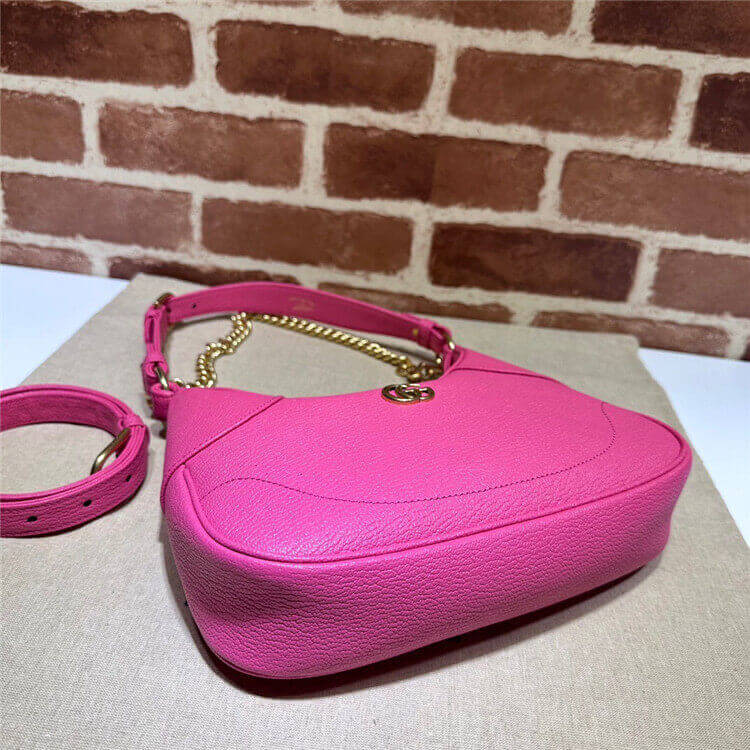 1:1 Mirror Quality Replica Gucci Aphrodite Small Shoulder Bag Style:731817 AAA9F 6627 Pink soft leather Shiny gold-toned hardware Microfiber lining with a suede-like finish Double G Adjustable shoulder strap with 21.6″ drop Removable chain strap with 10.2″ drop Zip closure Small size: W9.9″ x H7.5″ x D2.8″