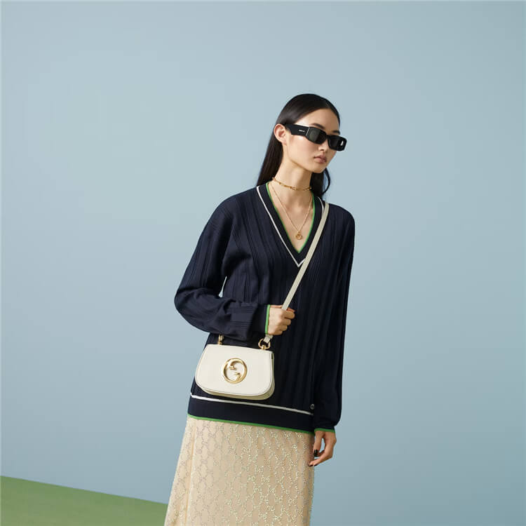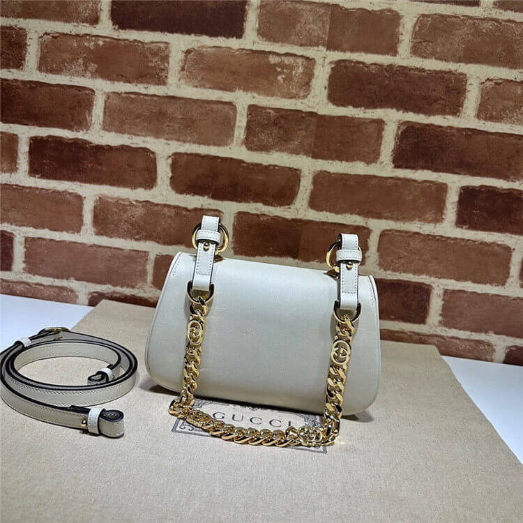 1:1 Mirror Quality Replica Gucci Blondie Mini Shoulder Bag Style:724645 UXX0G 9022 White leather Gold-toned hardware Leather lining Round Interlocking G Interlocking G chain Inside: 2 main compartments, 1 open pocket Double shoulder strap Mini size: W21.5cm x H13.5cm x D7cm The model is 175 cm tall
