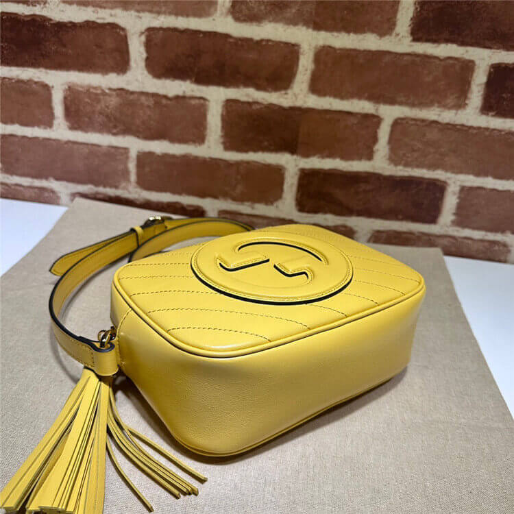 1:1 Mirror QualityReplica Gucci Blondie Small Shoulder BagStyle:742360 1IV0G 7110Yellow leatherRound Interlocking G leather patchSide tassel detailAdjustable shoulder strap with 21.4″ dropZipper closure8.3″W x 6.1″H x 3.1″D