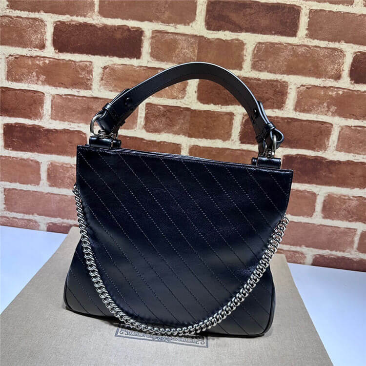 1:1 Mirror Quality Replica Gucci Blondie Small Tote Bag Style:751518 1AAOW 1000 Black leather Cotton linen lining Round Interlocking G leather patch Inside: 3 main compartments and 1 zip pocket Top handle with 5.9″ drop Chain shoulder strap with 11.8″ drop Small size: 11.8″W x 9.4″H x 2.4″D