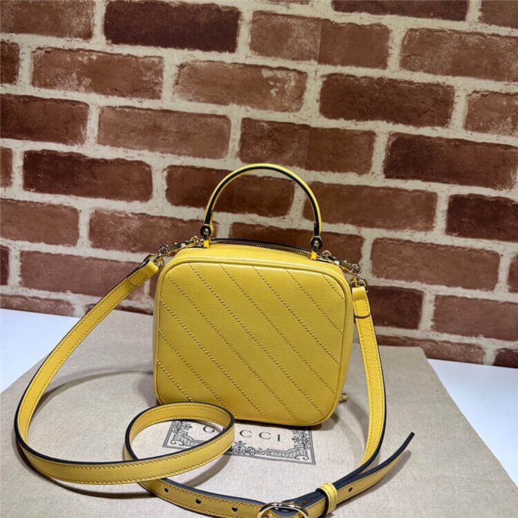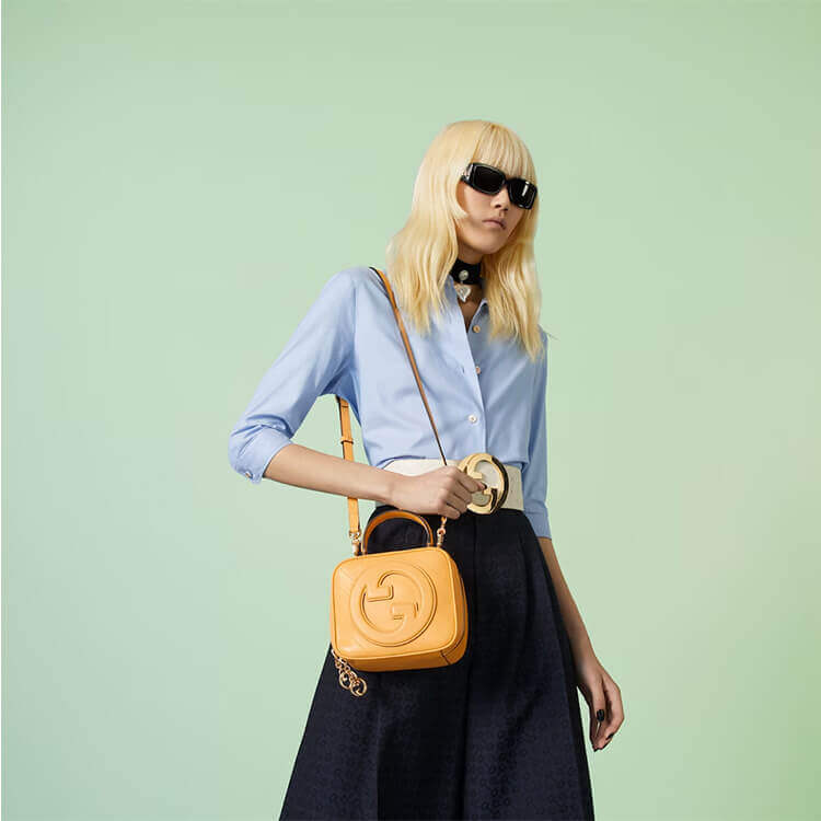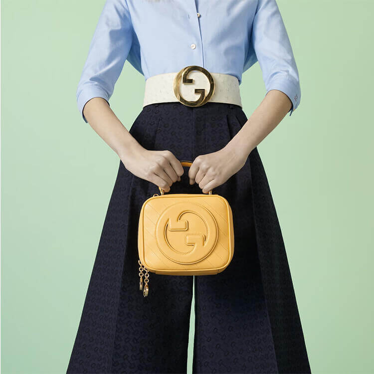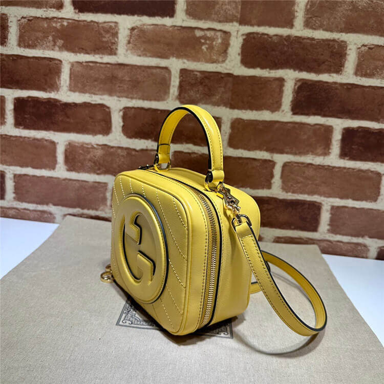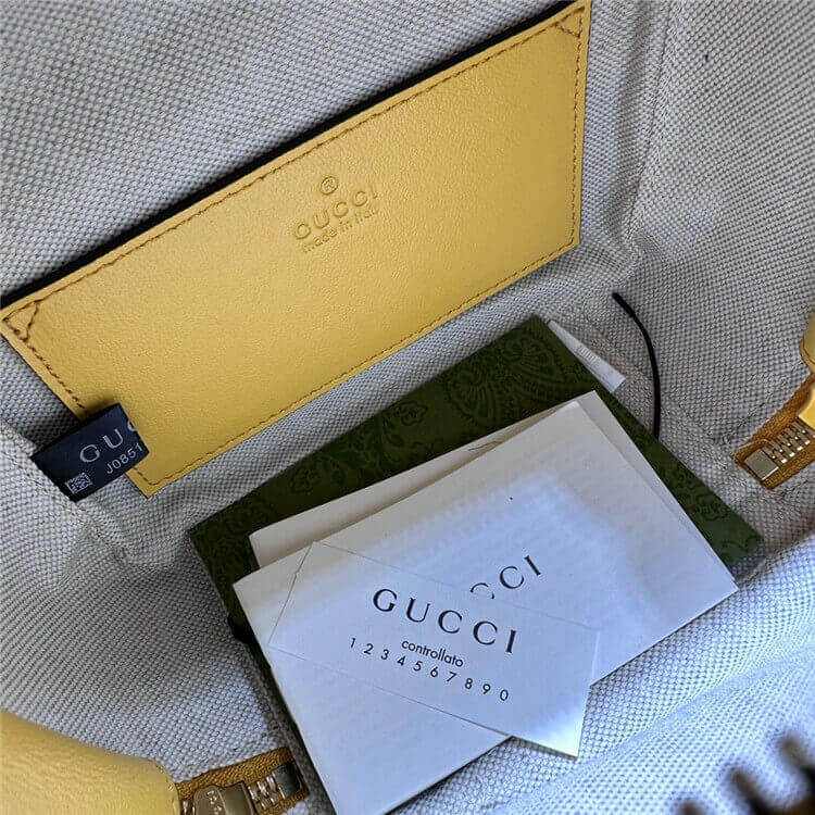 1:1 Mirror Quality Replica Gucci Blondie Top Handle Bag Style:744434 1IV0G 7110 Yellow leather Cotton linen lining Round Interlocking G leather patch Top handle with 3.1″ drop Adjustable shoulder strap with 20.5″ drop Double zipper closure with Round Interlocking G 6.7″W x 5.9″H x 3.5″D