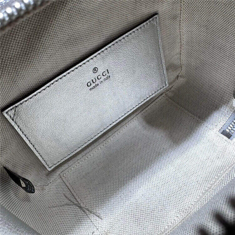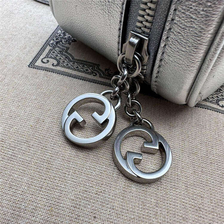 1:1 Mirror Quality Replica Gucci Blondie Top Handle Bag Style:744434 AACBO 8106 Metallic silver leather Cotton linen lining Round Interlocking G leather patch Top handle with 3.1″ drop Adjustable shoulder strap with 20.5″ drop Double zipper closure with Round Interlocking G 6.7″W x 5.9″H x 3.5″D