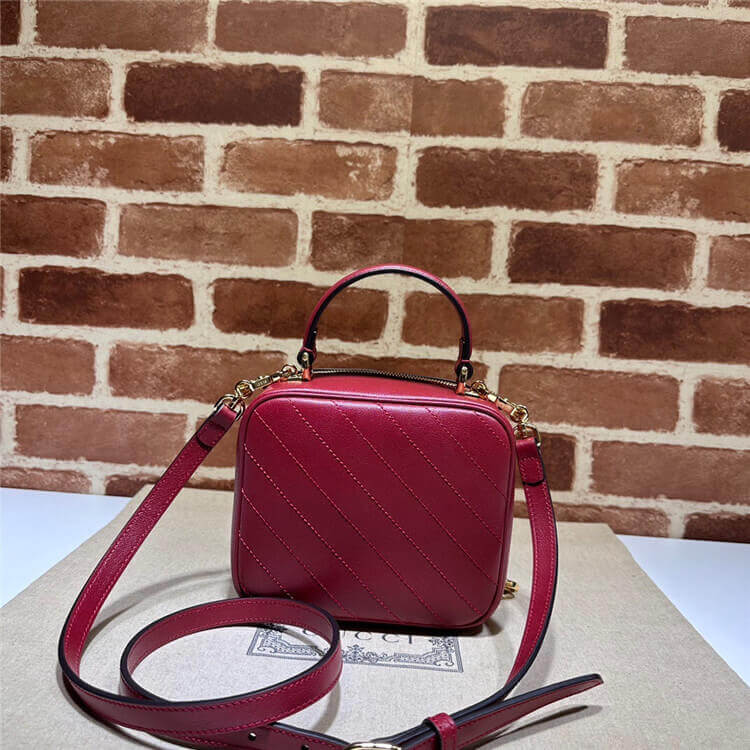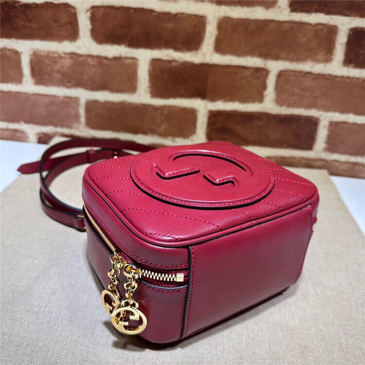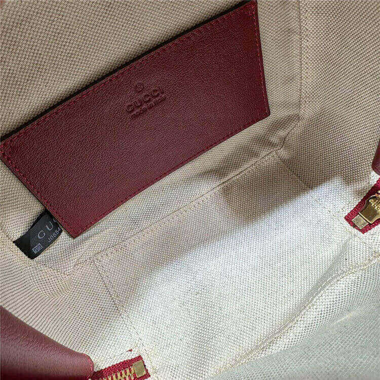 1:1 Mirror Quality Replica Gucci Blondie Top Handle Bag Style:744434 1IV0G 6420 Red leather Round Interlocking G leather patch Top handle with 3.1″ drop Adjustable shoulder strap with 20.5″ drop Double zipper closure with Round Interlocking G 6.7″W x 5.9″H x 3.5″D The model is 5’8″ tall