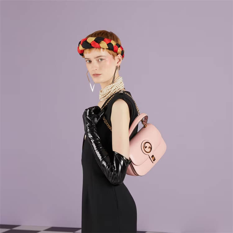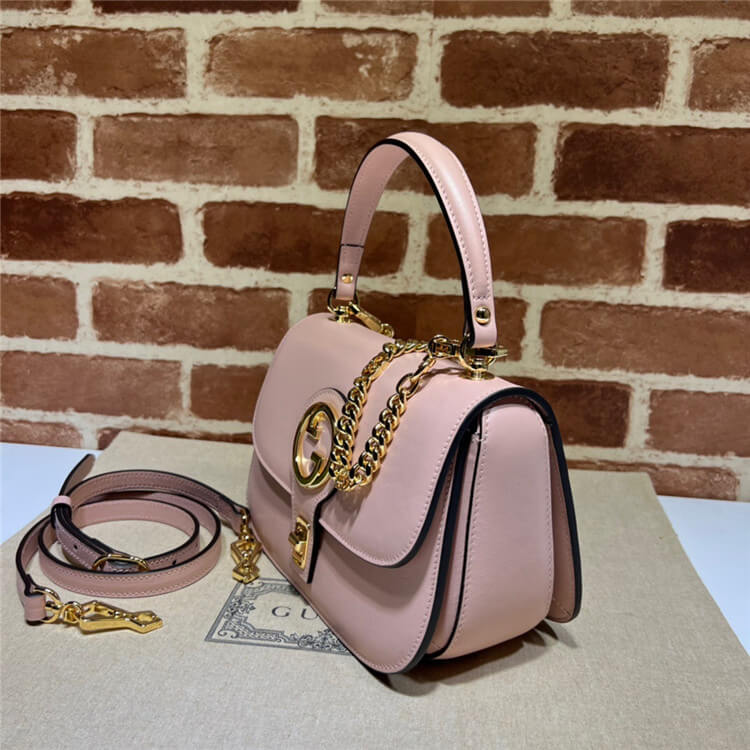 1:1 Mirror QualityReplica Gucci Blondie Top-Handle BagStyle:735101 UXX0G 6910Light pink leatherGold-toned hardwareRound Interlocking GInside: 1 zip pocket, 2 open pocketsTop handleChain shoulder strap and additional leather strapPush clasp closure9″W x 6″H x 4.3″D