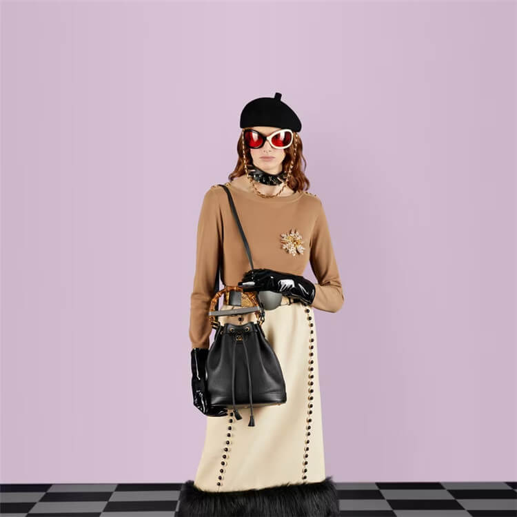 1:1 Mirror Quality Replica Gucci Diana Small Bucket Bag Style:724652 UAAAY 1092 Black leather This item comes with 1 decorative leather belt handle shaper as shown in the image Double G Adjustable shoulder strap Interior open pocket Bamboo handles with 4.3″ drop Small size: 9.4″W x 15.1″H x 4″D