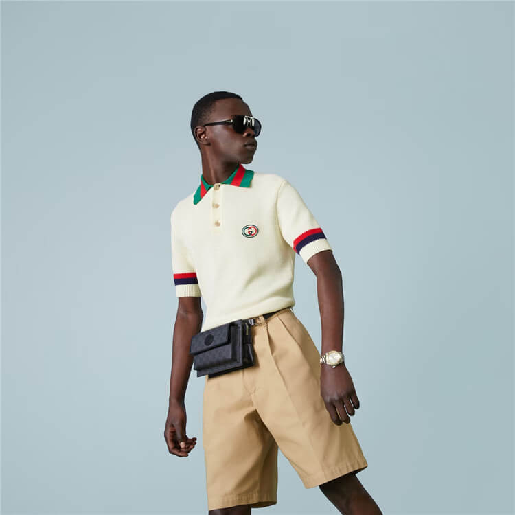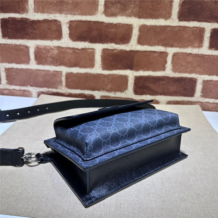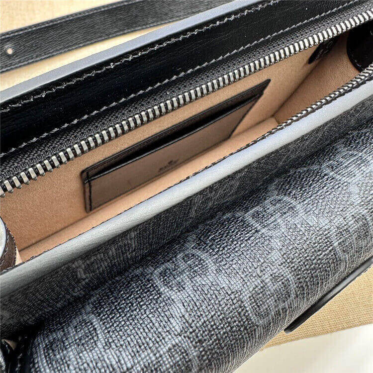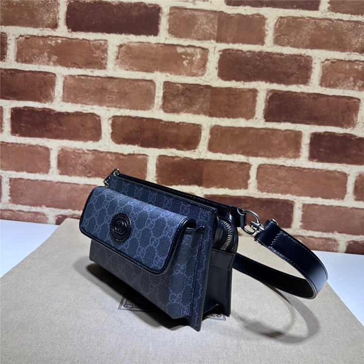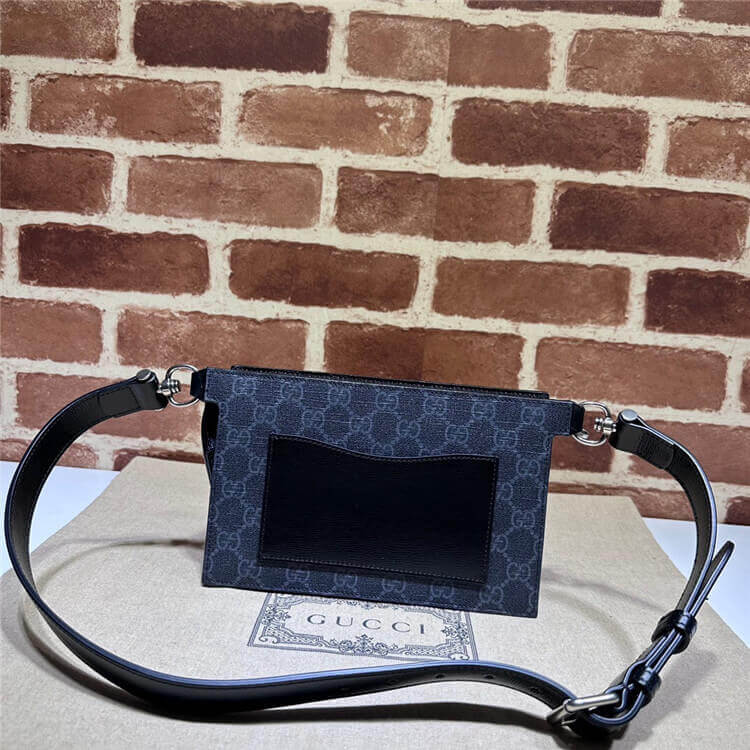 1:1 Mirror Quality Replica Gucci GG Belt Bag With Interlocking G Style:746300 92TCF 1000 Black GG Supreme canvas Black leather trim Moiré and microfiber lining with suede-like finish Oval Interlocking G leather tag Front pocket with button Open back pocket Zip closure 7.1″W x 5.1″H x 2″D The model is 6′ tall