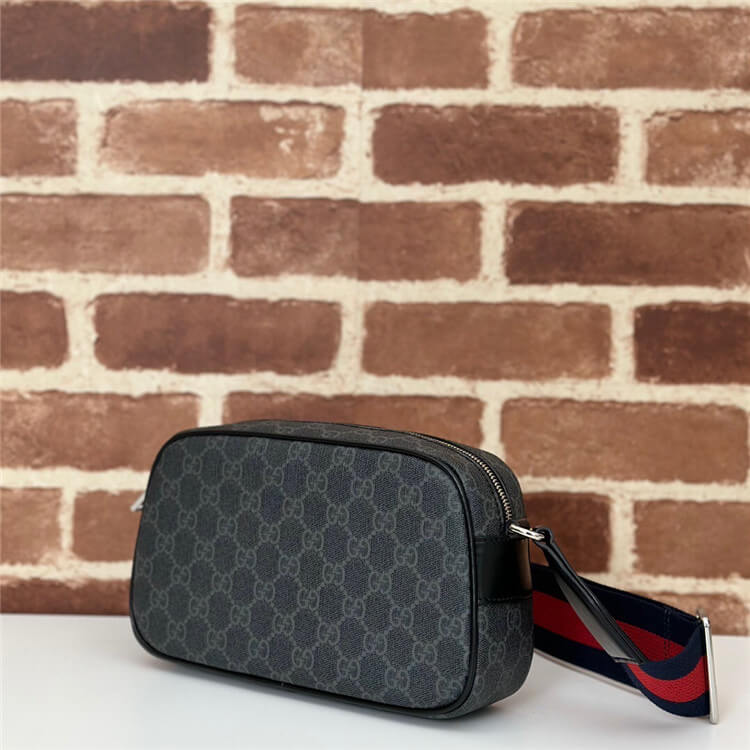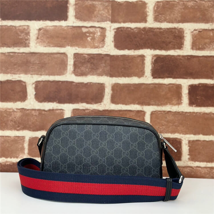 1:1 Mirror QualityReplica Gucci GG Crossbody BagStyle:792097 FADJA 1042Black GG Supreme canvasBlack leather trimBlue and red WebCotton linen liningCanvas shoulder strap with 50cm dropZipper closureW24cm x H14cm x D6cm