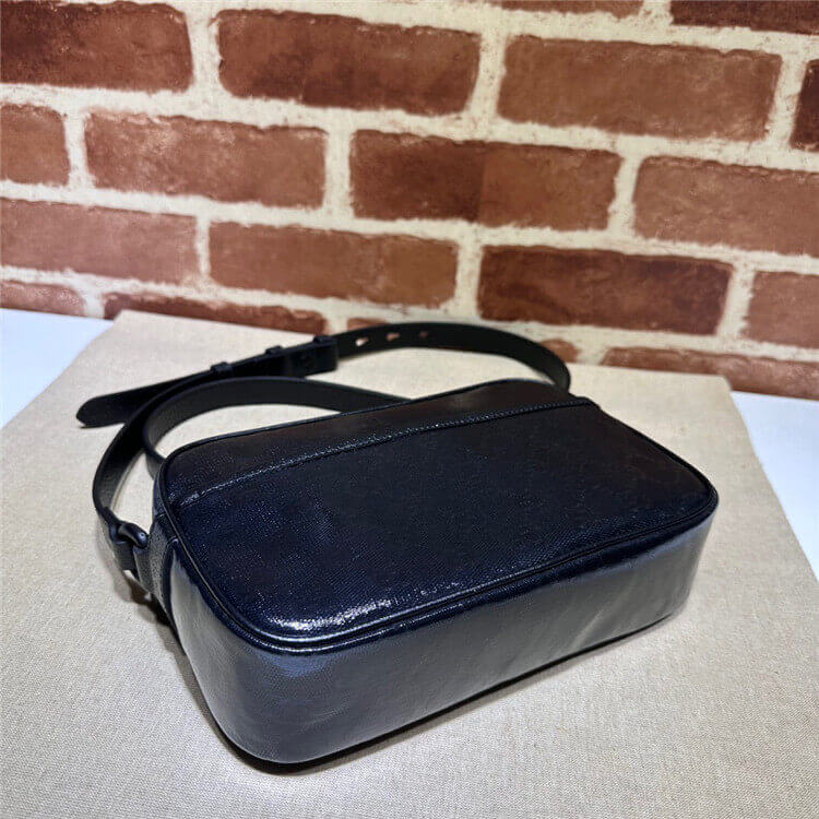 1:1 Mirror Quality Replica Gucci GG Crystal Mini Shoulder Bag Style:760342 FACK5 1000 Black GG Crystal canvas Black leather trim Palladium-toned hardware Nylon lining Inside: 1 pocket with snap button 1 external pocket Adjustable shoulder strap with 19.6″ drop Zip closure 8.8″W x 5.5″H x 1.9″D