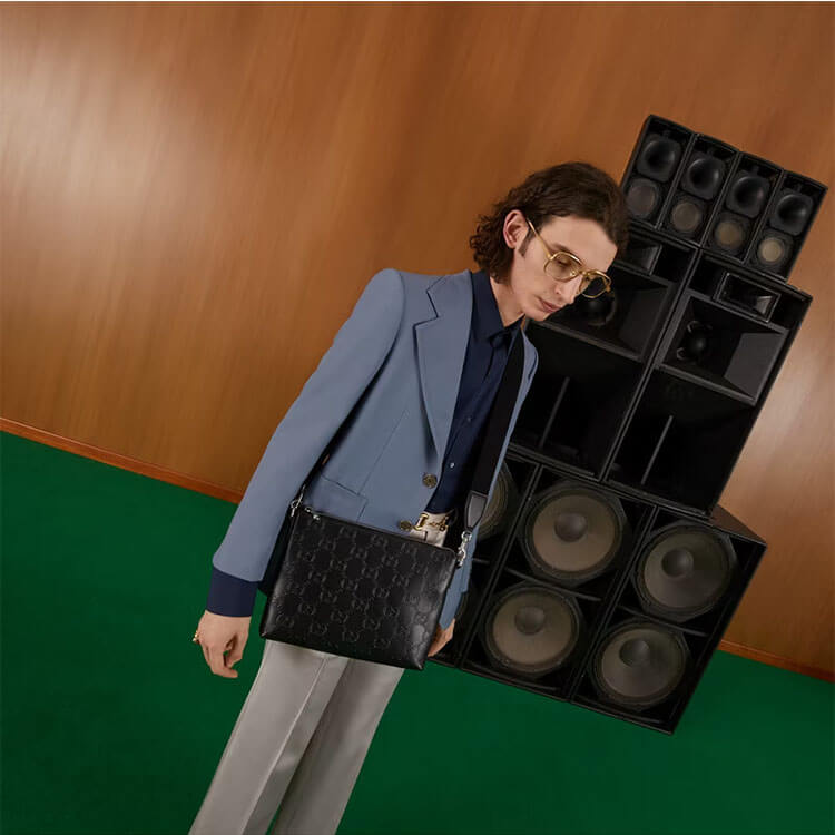 1:1 Mirror Quality Replica Gucci GG Embossed Medium Messenger Bag Style:696009 1W3CN 1000 Black GG embossed leather Black leather trim Palladium hardware Cotton linen lining Inside: 1 zip pocket Shoulder strap with 22.4″ drop Zip closure 12.2″W x 9.6″H x 2″D