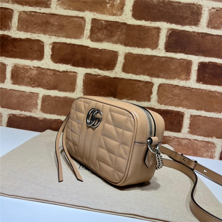 1:1 Mirror Quality Replica Gucci GG Marmont Mini Shoulder Bag Style:634936 UM8BN 2754 Beige matelasse leather Antique silver-toned hardware Microfiber lining with a suede-like finish Double G Interior: 1 open pocket Shoulder strap with 23.6″ drop Zip closure Weight: .394 KG Mini size: 7″W x 4.7″H x 2.4″D