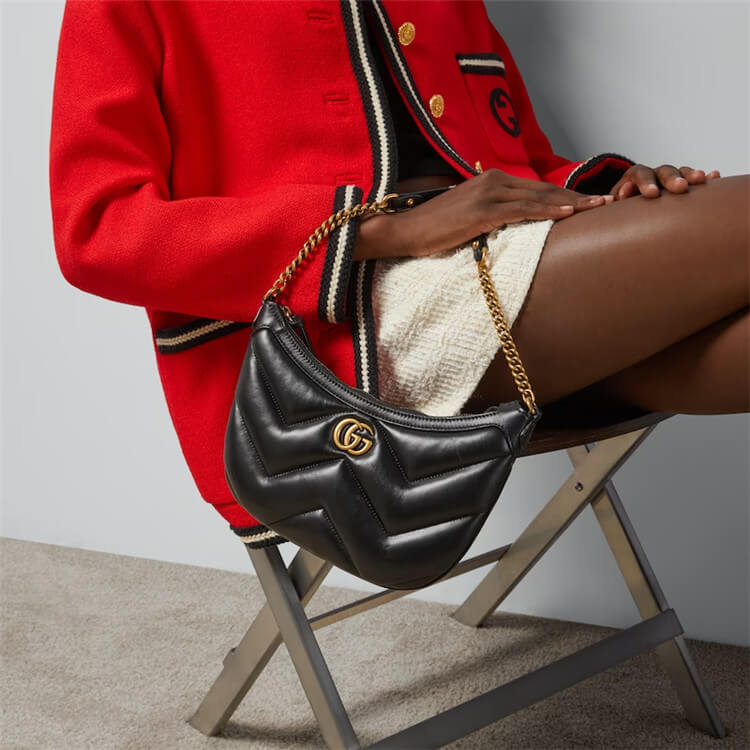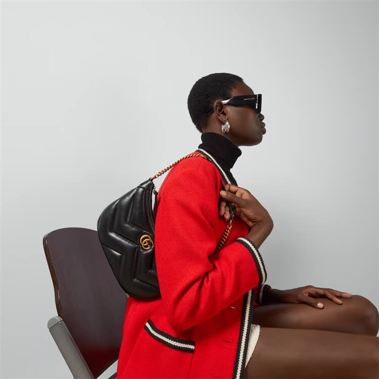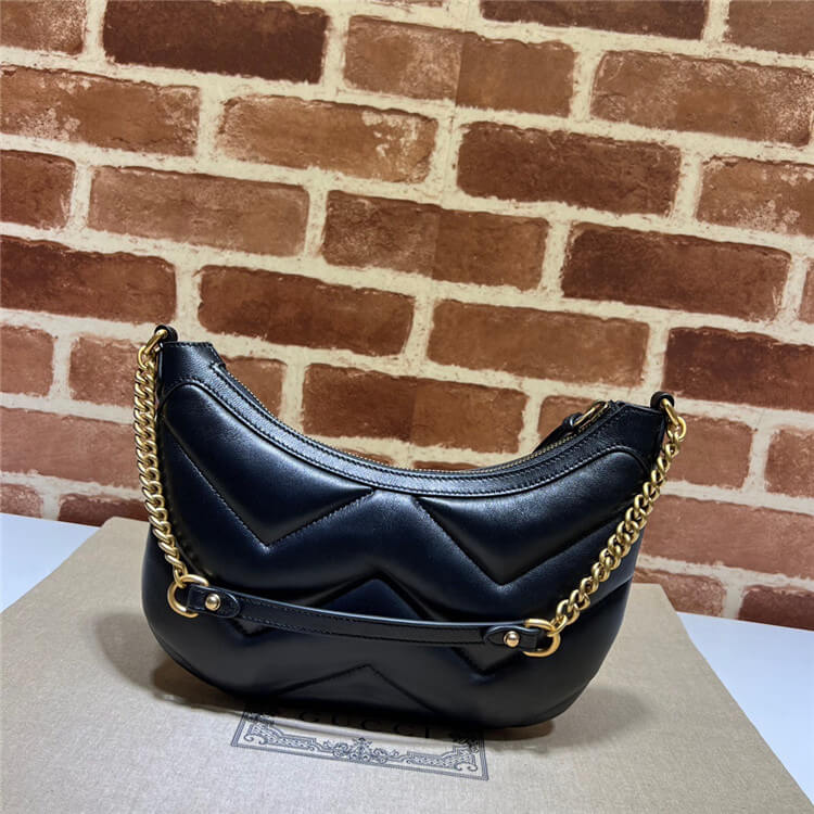 1:1 Mirror Quality Replica Gucci GG Marmont Small Shoulder Bag Style:777263 AAC74 1000 Black matelassé chevron leather Gold-toned hardware Microfibre lining with suede like finish Double G Inside: 1 open pocket Shoulder strap drop: 23.5cm Zip closure Small size: W26cm x H17cm x D4cm