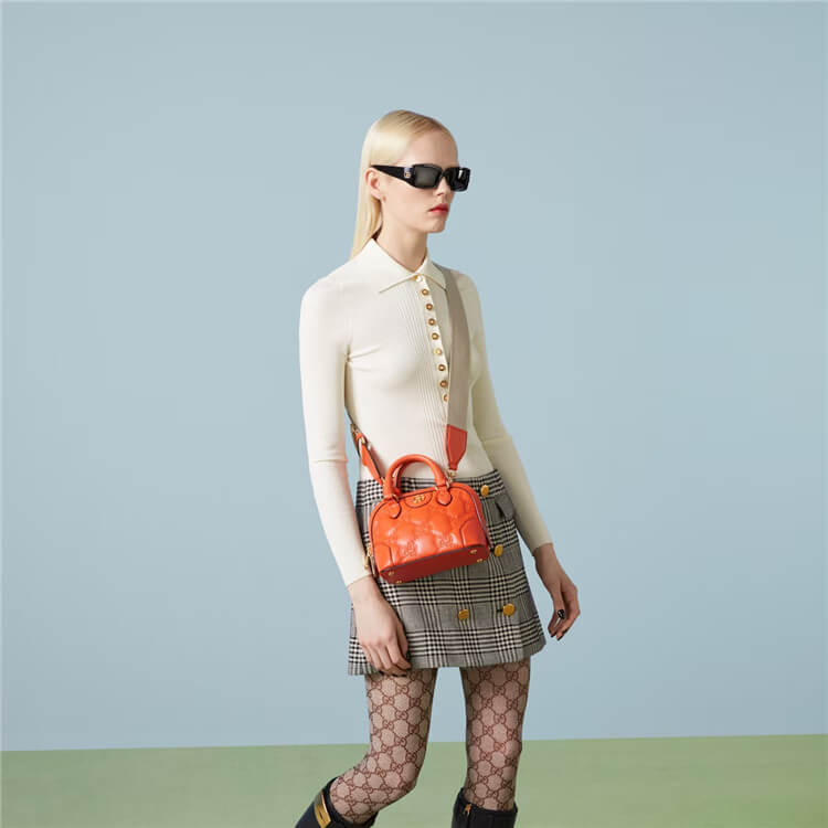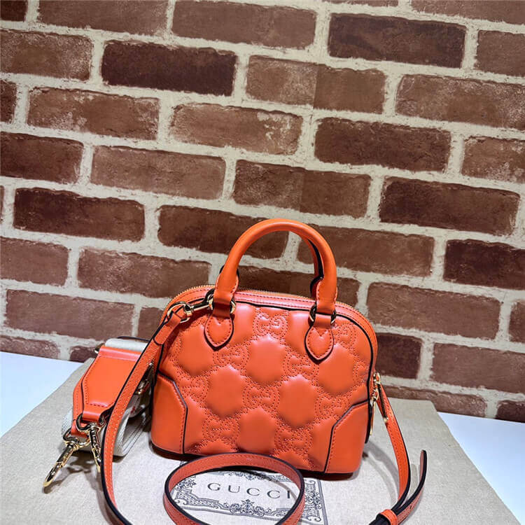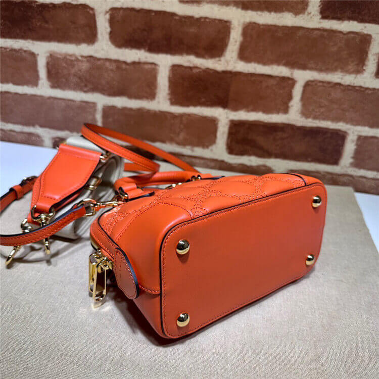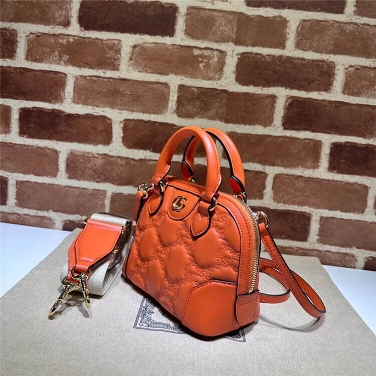 1:1 Mirror Quality Replica Gucci GG Matelasse Handbag Style:727793 UM8HG 7541 Orange GG Matelassé leather Gold-toned hardware Cotton linen lining Double G Top handle with 2.5″ drop Detachable shoulder strap with 18.5″ drop Zip closure 7.5″W x 5″H x 4″D Two detachable straps: ivory nylon and orange leather