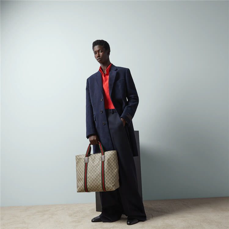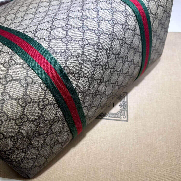 1:1 Mirror QualityReplica Gucci GG Tender Medium Tote BagStyle:763287 FACHL 8844Beige and ebony GG Supreme Tender canvasGreen and red Web grosgrainNylon lining1 zip pocketHandle with 4.3″ dropMedium size: 16″W x 15.3″H x 6.2″D