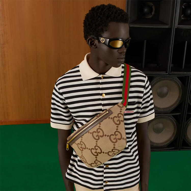 1:1 Mirror QualityReplica Gucci Jumbo GG Belt BagStyle:696031 UKMDG 2570Camel and ebony jumbo GG canvasBrown leather trimGreen and red WebCotton linen liningWaist belt with buckle closureZip closure15.3″W x 6.7″H x 1.6″DWeight: 0.33kg