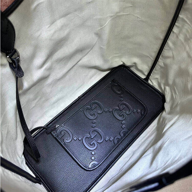 1:1 Mirror QualityReplica Gucci Jumbo GG Large Tote BagStyle:726755 AABY0 1000Black jumbo GG leatherCotton linen liningInside: 1 zip pouchHandle with 8.3″ dropWeight: 1.7lbs approximately15.7″W x 13″H x 7.5″D