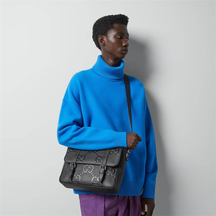 1:1 Mirror Quality Replica Gucci Jumbo GG Medium Messenger Bag Style:760234 AABY0 1000 Black jumbo GG leather Cotton linen lining Interior: 1 zip pocket Adjustable shoulder strap with 52.5cm drop Magnetic flap closure Weight: 1kg approximately Medium size: W31cm x H24.5cm x D6cm