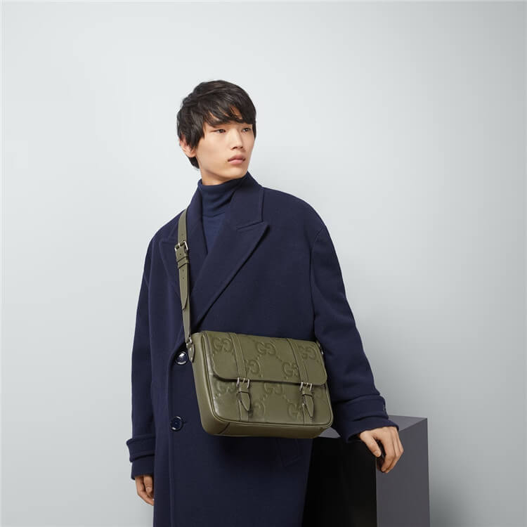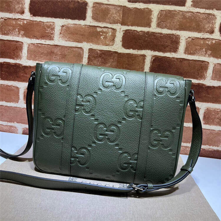 1:1 Mirror Quality Replica Gucci Jumbo GG Medium Messenger Bag Style:760234 AABY0 3346 Dark green jumbo GG leather Cotton linen lining Interior: 1 zip pocket Adjustable shoulder strap with 52.5cm drop Magnetic flap closure Medium size: W31cm x H24.5cm x D6cm