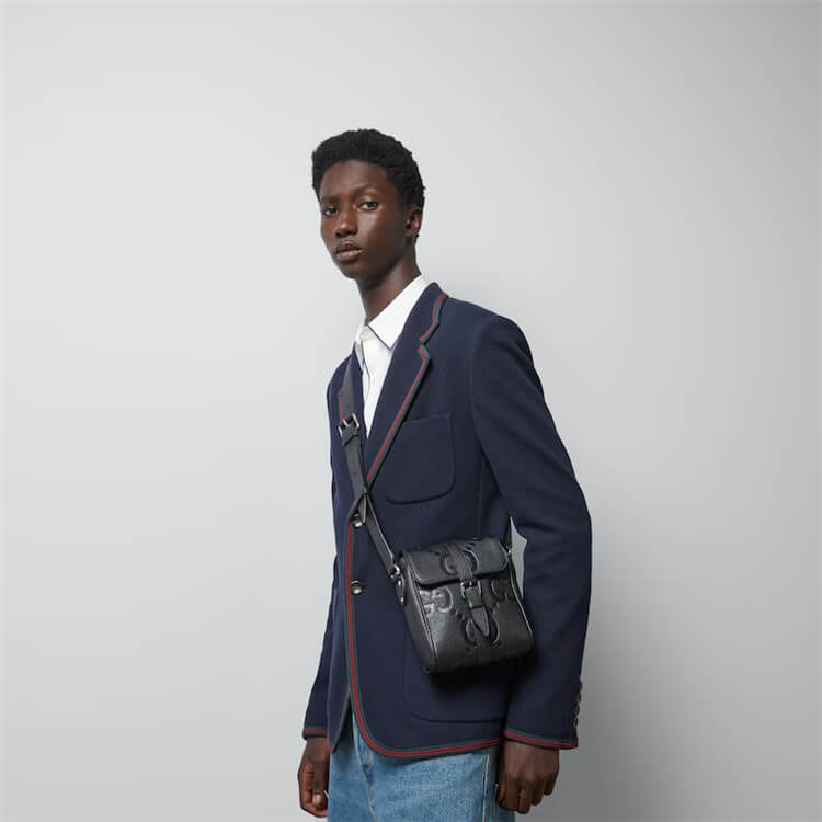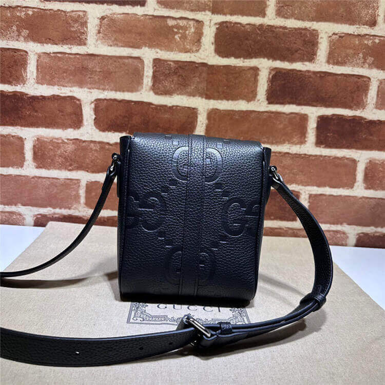 1:1 Mirror Quality Replica Gucci Jumbo GG Small Messenger Bag Style:760235 AABY0 1000 Black jumbo GG leather Cotton linen lining Interior: 3 card slots Adjustable shoulder strap with 22″ drop Flap magnetic closure Weight: 0.9lbs approximately Small size: 5.7″W x 7.3″H x 1.8″D