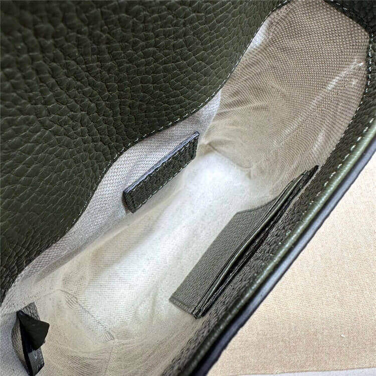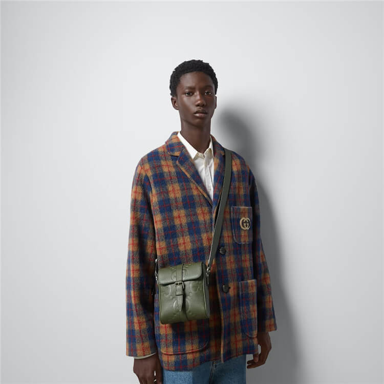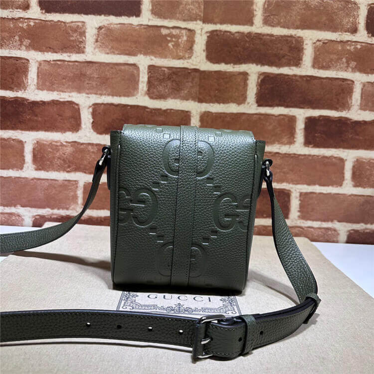 1:1 Mirror Quality Replica Gucci Jumbo GG Small Messenger Bag Style:760235 AABY0 3346 Dark green jumbo GG leather Cotton linen lining Interior: 3 card slots Adjustable shoulder strap with 22″ drop Flap magnetic closure Small size: 5.7″W x 7.3″H x 1.8″D