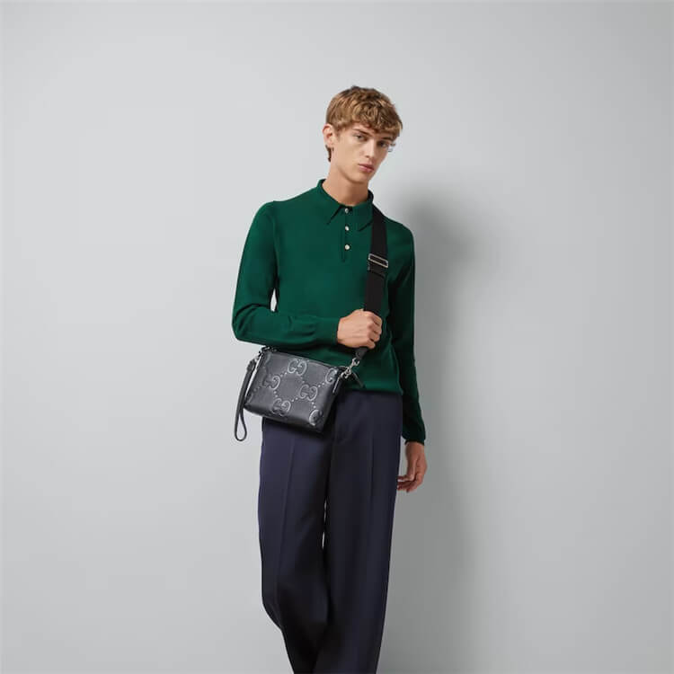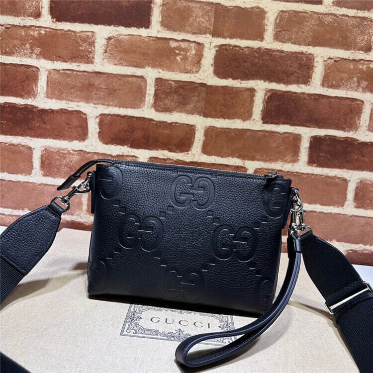 1:1 Mirror Quality Replica Gucci Jumbo GG Small Messenger Bag Style:761747 AABY7 1000 Black jumbo GG leather Cotton linen lining Detachable leather handle Interior: 1 zip pocket Handle drop: 17cm Adjustable shoulder strap with 60cm drop Zip closure Small size: W23cm x H17cm x D5cm