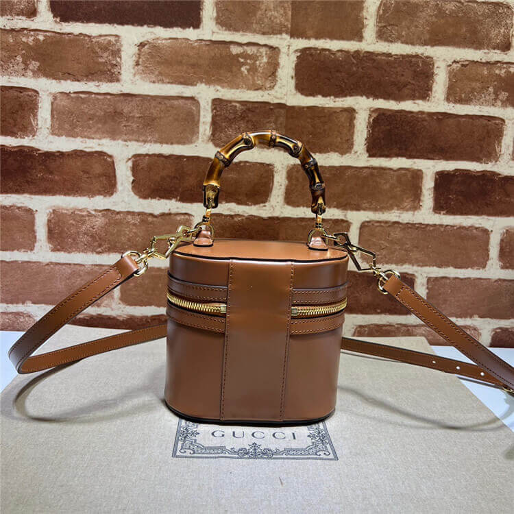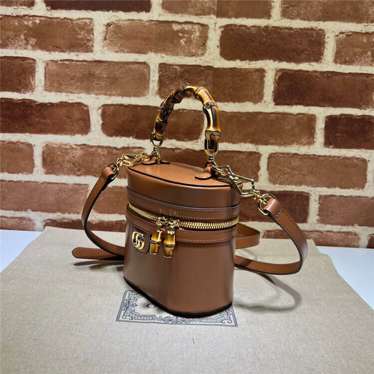 1:1 Mirror Quality Replica Gucci Mini Bamboo Shoulder Bag Style:760200 10O0G 2535 Brown leather Gold-toned hardware Bamboo handle Double G Handle with 3.5″ drop Detachable and adjustable shoulder strap with 19.6″ drop Zip closure Mini size: 6″W x 5.3″H x 1.5″D