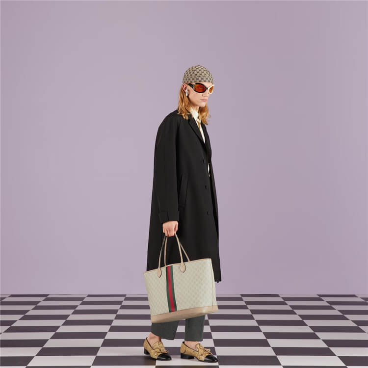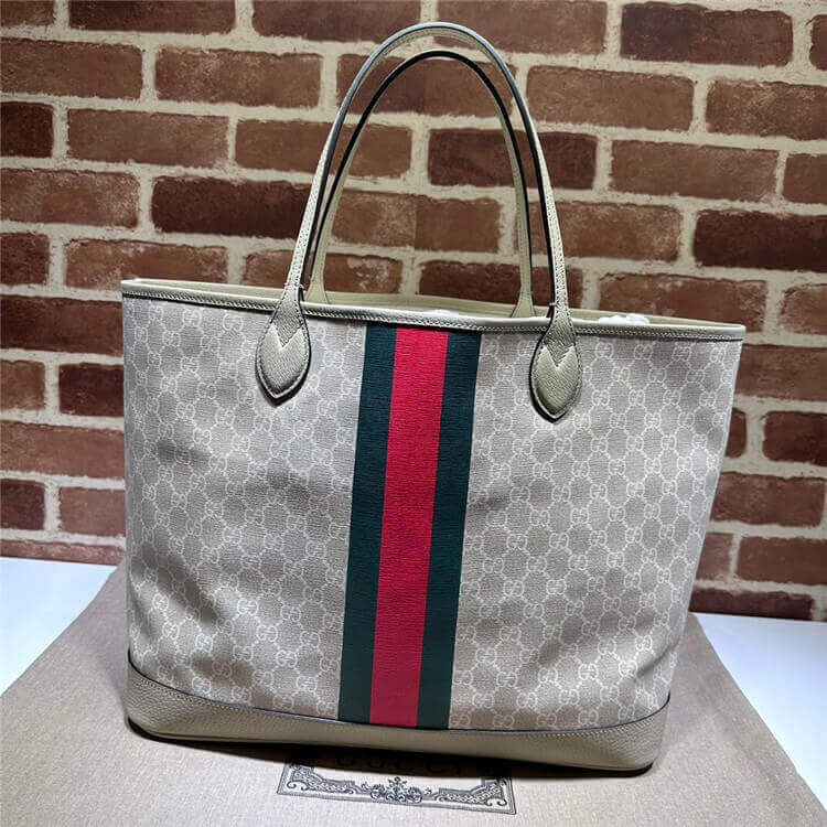 1:1 Mirror QualityReplica Gucci Ophidia GG Large Tote BagStyle:726755 FABKZ 9893Beige and white GG Supreme canvasOatmeal leather trimGreen and red Web trimCotton linen liningInside: 1 zip pouchHandle with 8.3″ drop15.7″W x 13″H x 7.5″D
