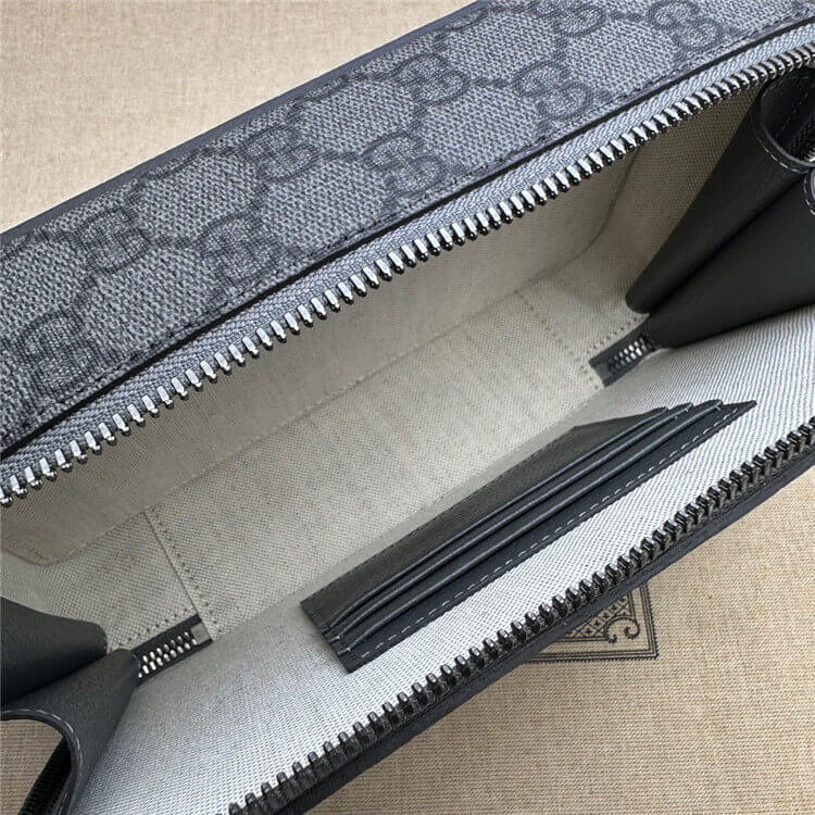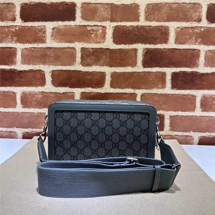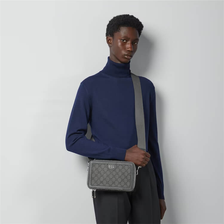 1:1 Mirror Quality Replica Gucci Ophidia GG Mini Bag Style:771174 2ZGMN 1244 Grey and black GG Supreme canvas Grey leather trim Palladium-toned hardware Moirè and cotton linen lining Double G Detachable canvas shoulder strap Zip closure W23cm x H14.5cm x D6cm