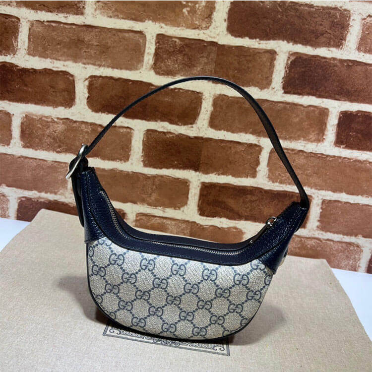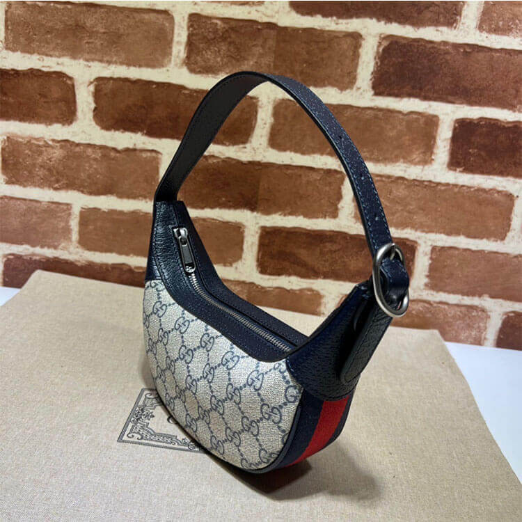 1:1 Mirror Quality Replica Gucci Ophidia GG Mini Bag Style:658551 96IWN 4076 Beige and blue GG Supreme canvas Blue leather trim Palladium-toned hardware Blue and red Web Double G 2 card slots Adjustable handle with 5.9″ drop Weight: 226gr approximately 7.9″W x 5.9″H x 2″D The model is 5’7″ tall