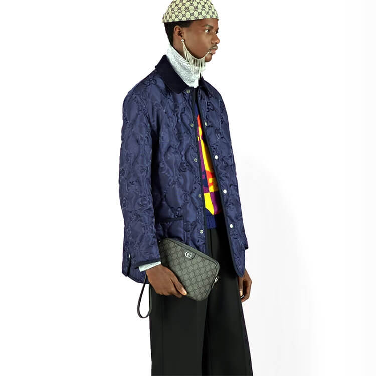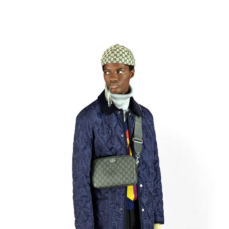 1:1 Mirror Quality Replica Gucci Ophidia GG Shoulder Bag Style:699439 UULHK 8576 Grey and black GG Supreme canvas Grey leather trim Palladium-toned hardware Cotton linen lining Double G Inside: 1 zip pocket Shoulder strap with 19.7″ drop Zip closure 9.2″W x 6.3″H x 1.8″D