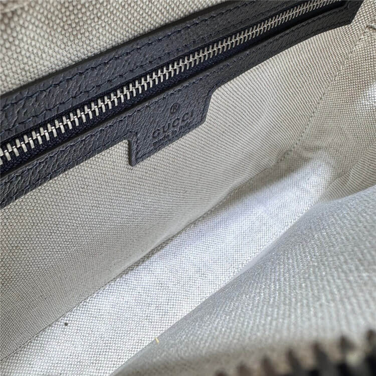1:1 Mirror Quality Replica Gucci Ophidia GG Shoulder Bag Style:699439 UULHK 8441 Blue and black GG Supreme canvas Black leather trim Palladium-toned hardware Cotton linen lining Double G Inside: 1 zip pocket Shoulder strap with 50cm drop Zip closure W23.5cm x H16cm x D4.5cm