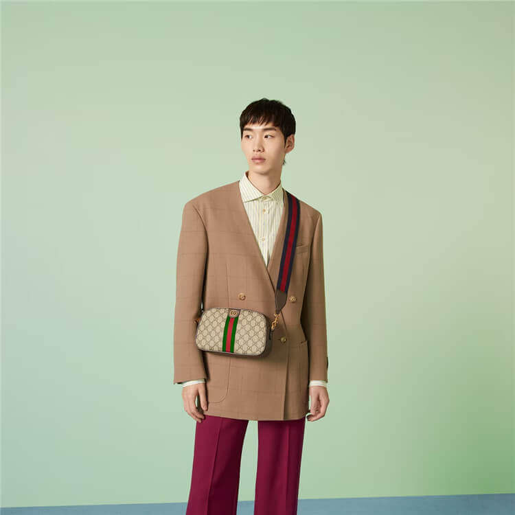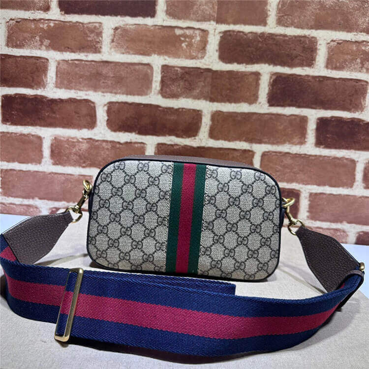 1:1 Mirror Quality Replica Gucci Ophidia GG Small Shoulder Bag Style:752591 FACFW 8920 Beige and ebony GG Supreme canvas Brown leather trim Gold-toned hardware Green and red Web Cotton linen lining Double G Inside: 1 pocket Detachable shoulder strap with 17.3″ drop Zip closure 9.4″W x 6″H x 2.7″D