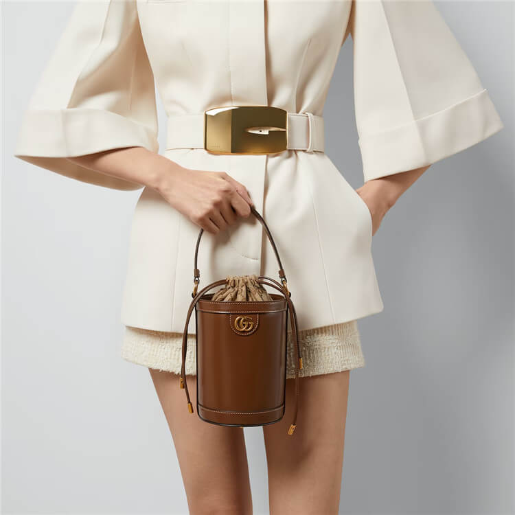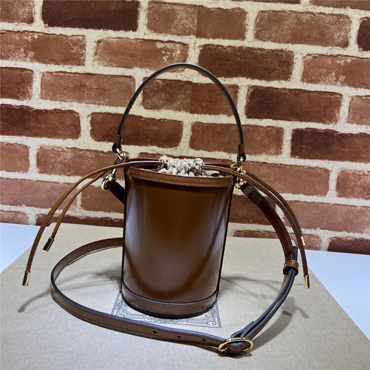 1:1 Mirror QualityReplica Gucci Ophidia Mini Bucket BagStyle:760201 AACP4 2342Brown leatherGold-toned hardwareDouble GHandle with 4.7″ dropAdjustable shoulder strap with 19.6″ dropDrawstring closureMini size: 4.5″W x 9″H x 3″D