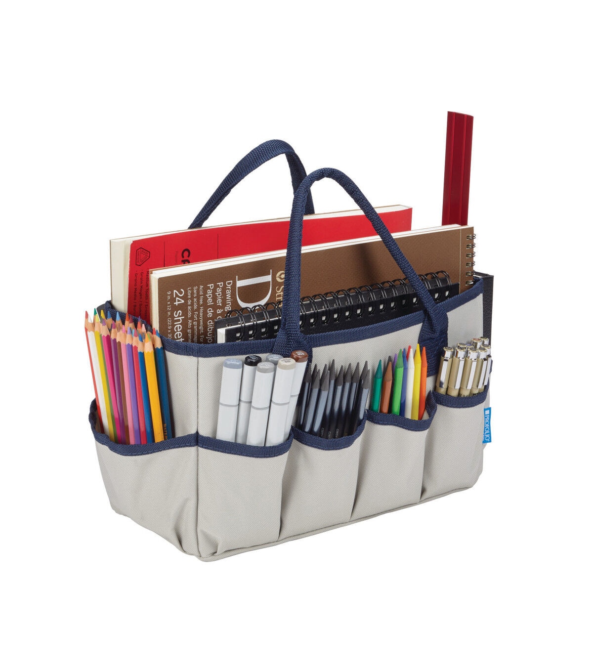 This ProFolio Entourage Tote Bag is the ideal carrying case for markers, brushes, paint tubes, spray cans, photo accessories and any other supplies. The smooth nylon interior is easy to clean; simply wipe away liquids with a wet paper towel. The bag folds flat for storage and has many external pockets for quick access.