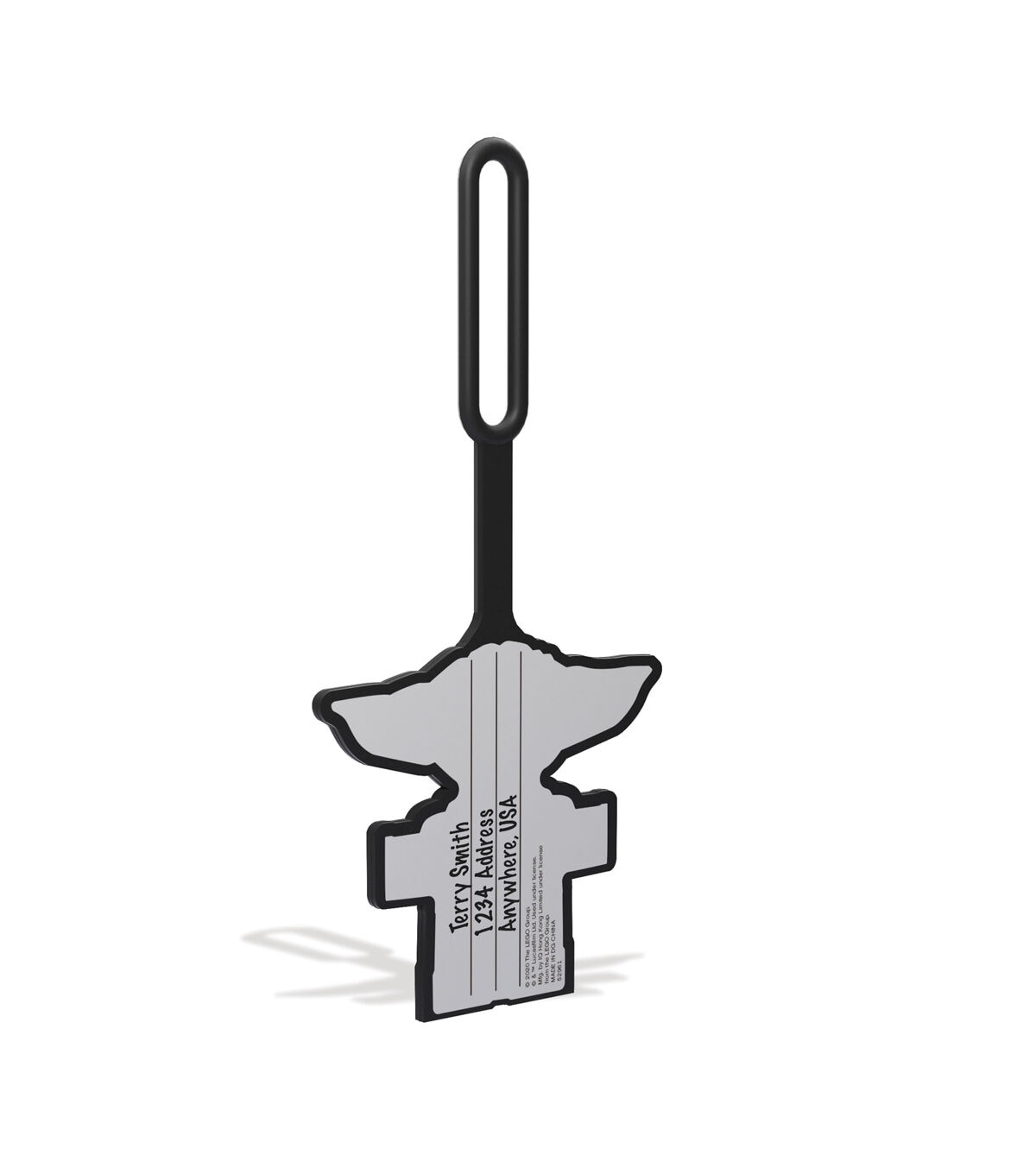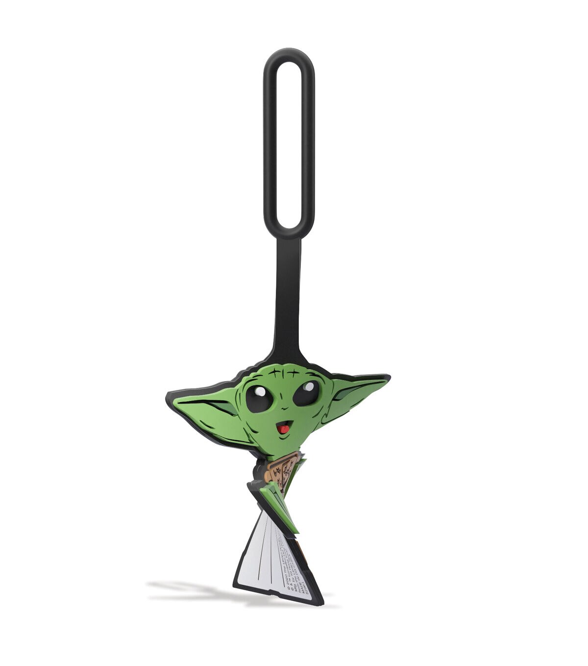 The LEGO Star Wars Grogu Smile bag tag made from 100% silicone is the perfect accessory to identify any luggage or backpack. The durable strap with loop securely attaches to any bag.