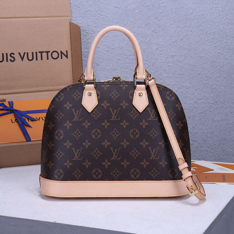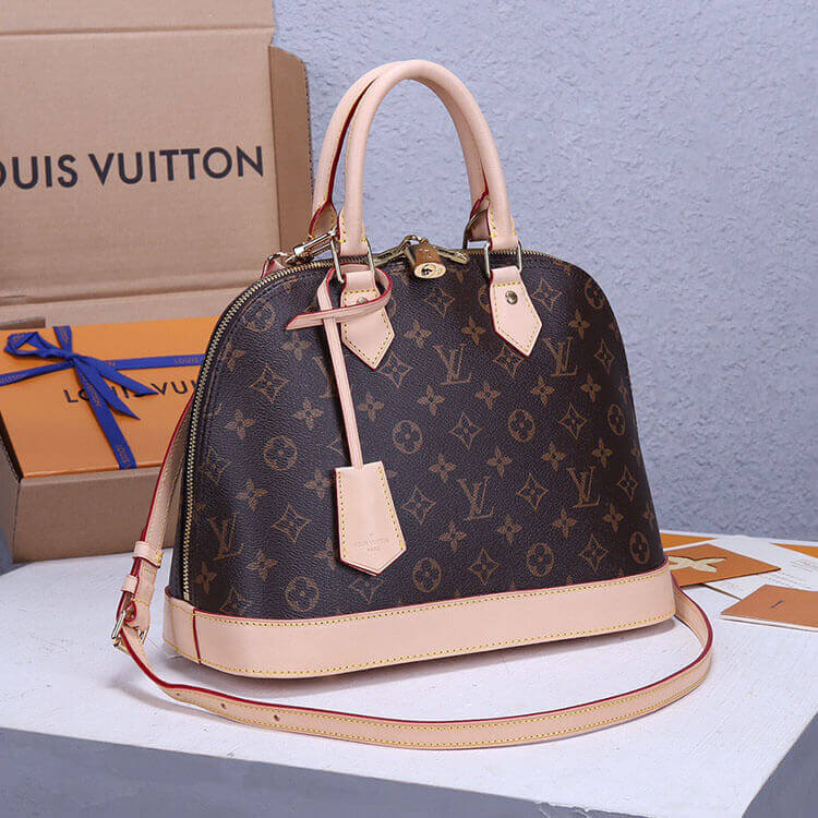 1:1 Mirror QualityReplica LV Alma PM HandbagStyle: M53151Size: 12.6”W x 9.8”H x 6.3”DMonogram coated canvasSmooth cowhide-leather trimTextile liningGold-color hardwareDouble zip closurePadlockKey bellInside flat pocketInside smartphone pocket4 protective metal bottom studsHandle:Double