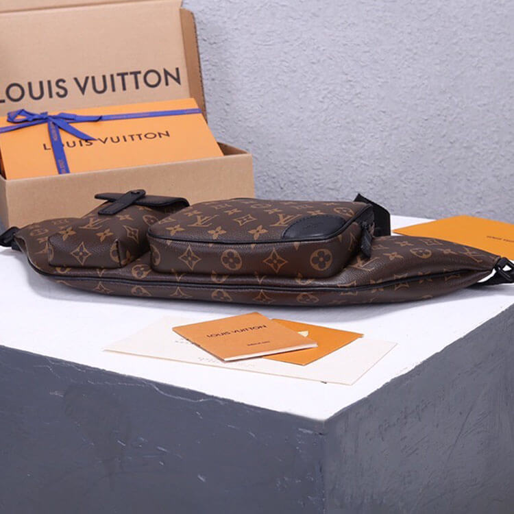 1:1 Mirror Quality Replica LV Christopher Bumbag Style:M45337 Size:19.7”W x 6.1”H x 1.6”D Monogram Macassar coated canvas and cowhide leather Cowhide-leather trim Textile lining Matte black hardware Large zipped flat compartment Front phone pocket with leather flap and clasp Front zipped pocket