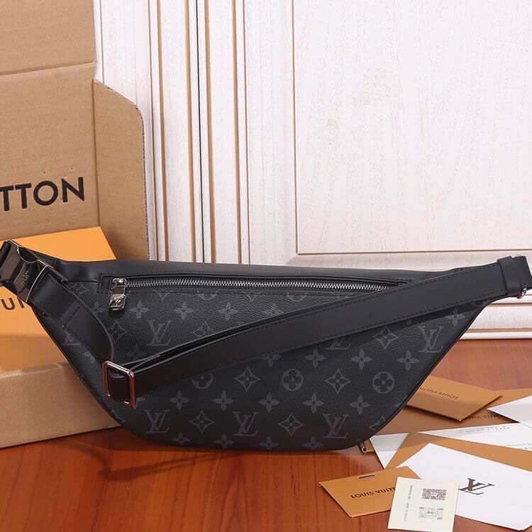 1:1 Mirror Quality Replica LV Discovery Bumbag Style: M44336 Size: 18.5”W x 7.9”H x 3.5”D Monogram Eclipse coated canvas Cowhide leather trim Textile lining Silver-color hardware Zip closure system Adjustable belt Outside front pocket Outside back flat pocket