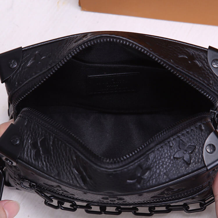 1:1 Mirror QualityReplica LV Mini Soft Trunk BagStyle: M55702Size: 7.3”W x 5.1”H x 3.1”DBlackTaurillon cowhide leatherTextile liningCowhide-leather trimMatte-black hardwareOutside zipped pocketInside flat pocketStrap:Not removable, adjustableStrap drop: 16.5 inchesStrap drop max: 22.8 inches