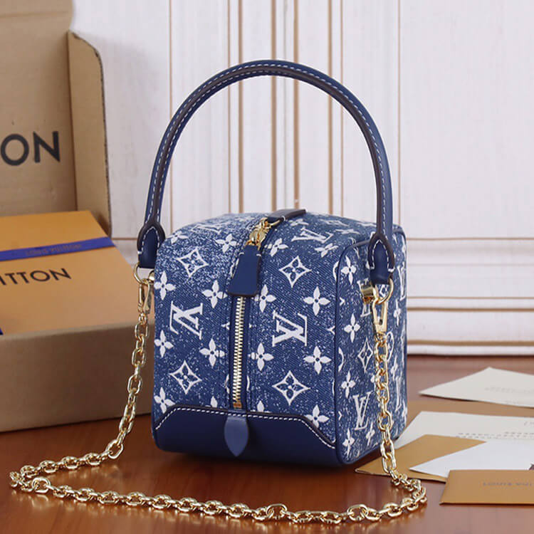1:1 Mirror QualityReplica LV Square BagStyle:M59611Size:16 x 16 x 16 cmNavy BlueDenim jacquard textileCalfskin-leather trimDenim jacquard textile liningGold-color hardwareDouble-zip closureInside flat pocket