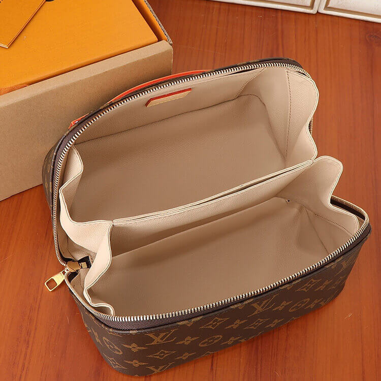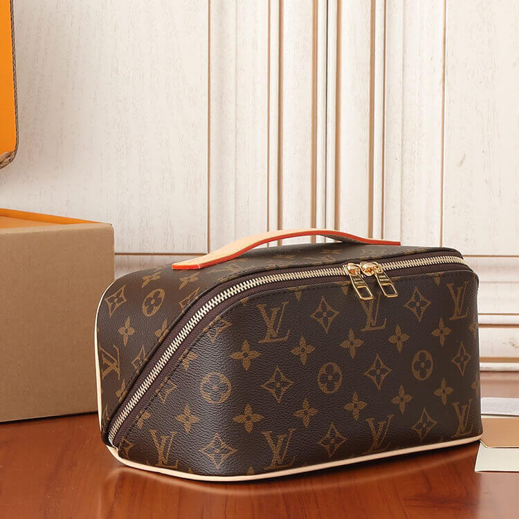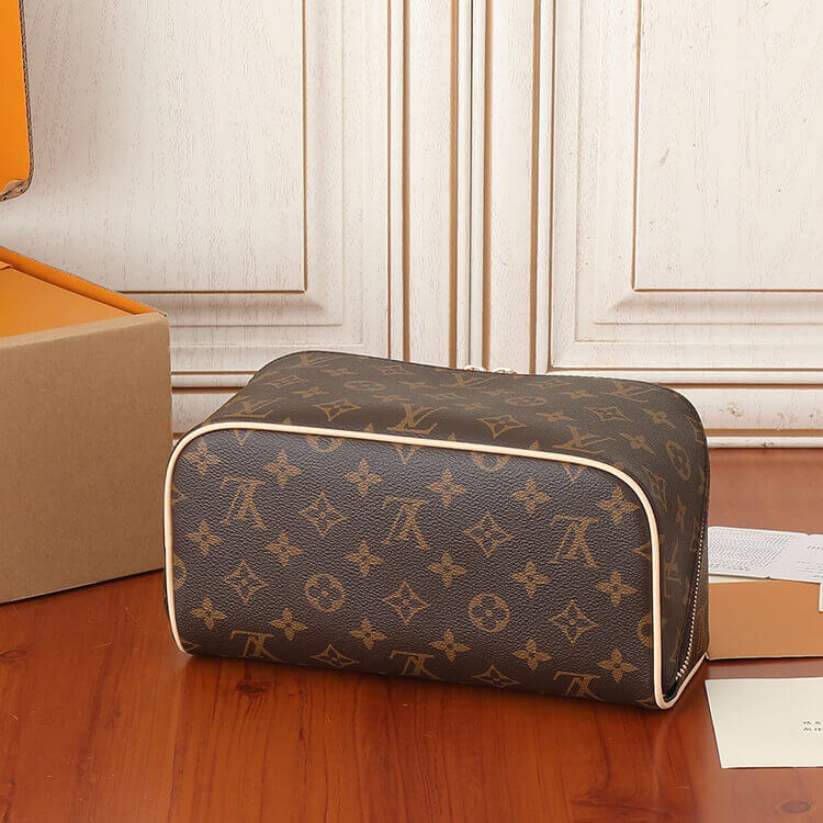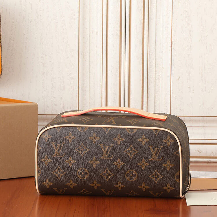 1:1 Mirror Quality Replica LV Toiletry Bag Style:M11750 24 x 13 x 13 cm (Length x Height x Width) Monogram coated canvas Cowhide-leather trim Textile lining (washable) Gold-toned hardware Double zip closure Expandable and large opening Two main compartments Inner flat pocket Handle: Single
