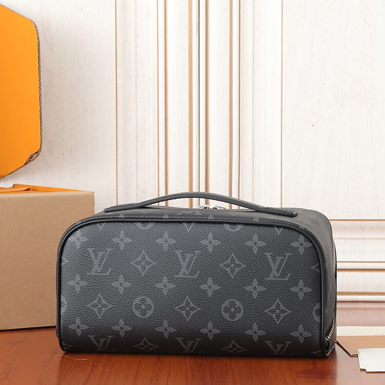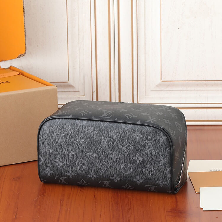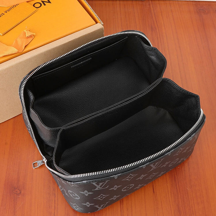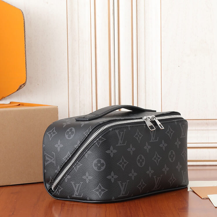 1:1 Mirror Quality Replica LV Toiletry Bag Style:M11508 9.4 x 5.1 x 5.1 inches (Length x Height x Width) Monogram Eclipse coated canvas Cowhide-leather trim Textile lining (washable) Palladium-toned hardware Double zip closure Expandable and large opening Two main compartments Inner flat pocket Handle:Single