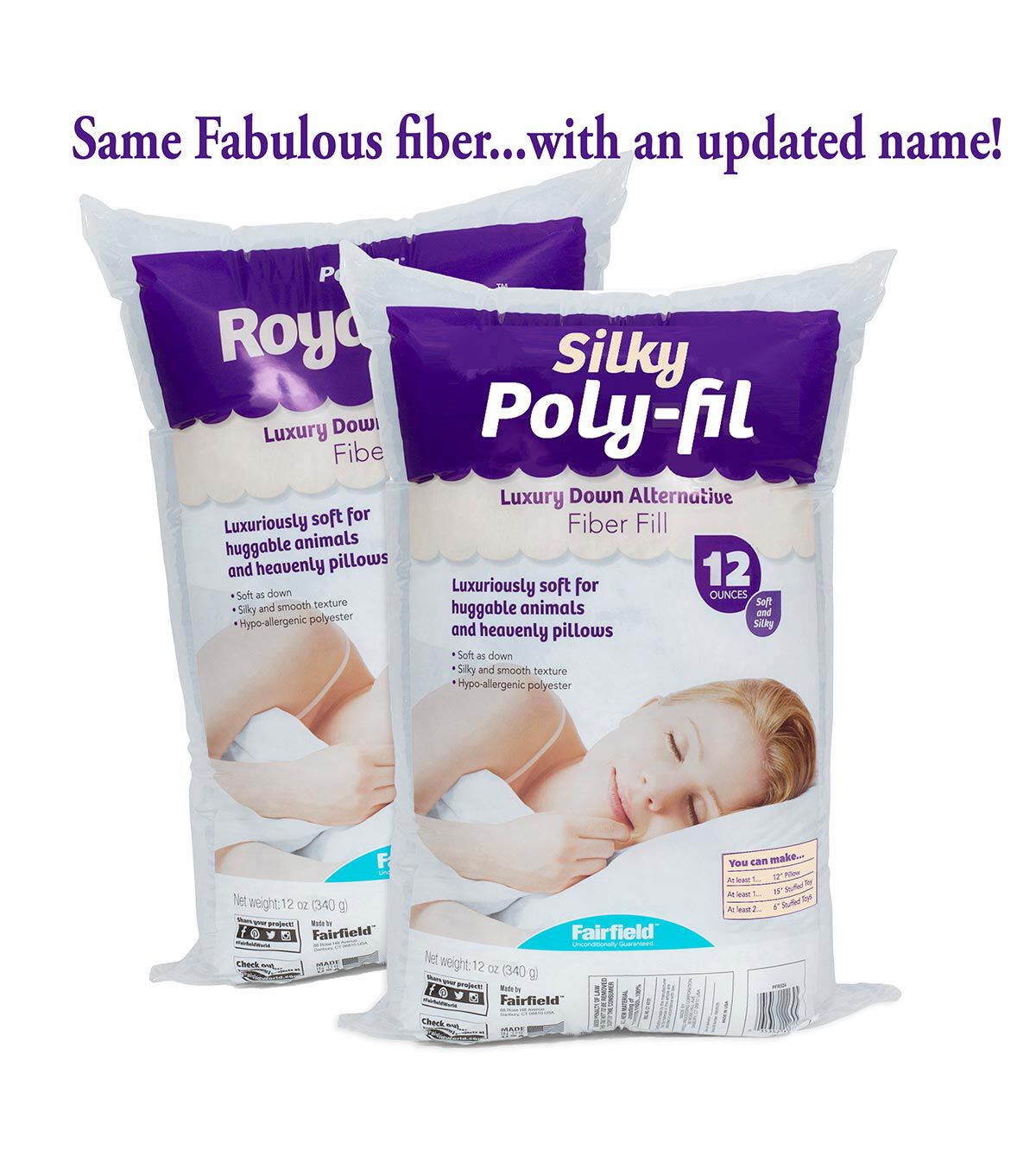 Silky Poly-Fil luxury Fiber Fill is as soft as down and provides a silky and smooth texture. Using virgin bright white siliconized polyester makes a perfect Hypo-allergenic down alternative fill. Ideal for making super huggable animals heavenly soft pillows with a high-end decorator look and feel.