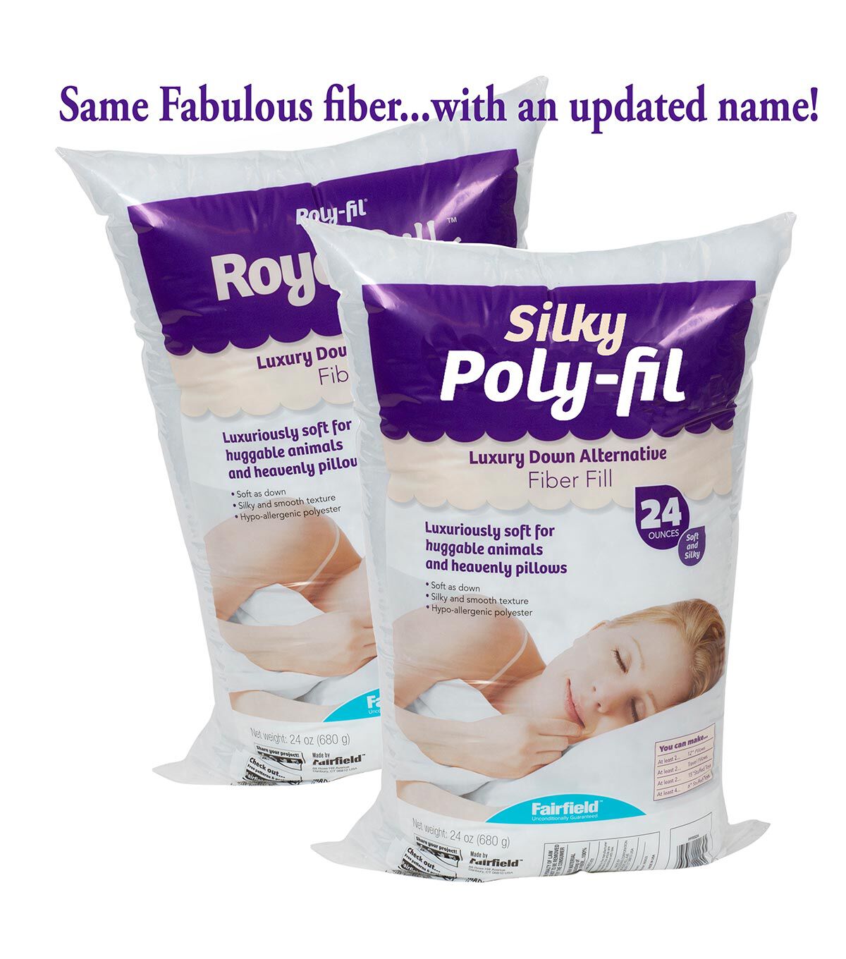 Silky Poly-Fil luxury Fiber Fill is as soft as down and provides a silky and smooth texture. Using virgin bright white siliconized polyester makes a perfect Hypo-allergenic down alternative fill. Ideal for making super huggable animals heavenly soft pillows with a high-end decorator look and feel.