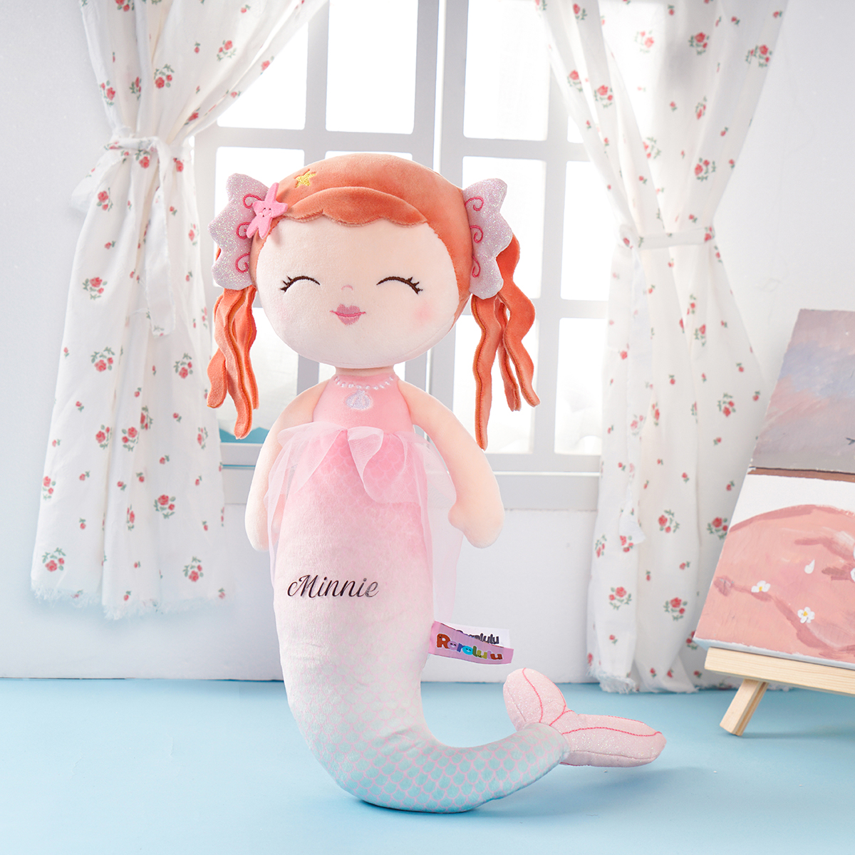 The beautiful Mermaid princess has long curly hair. She lives under the ocean and The beautiful ocean world and all the seashells and sea stars are all her possessions. Princess Mermaid is a kind and brave girl, she would bring gifts from the ocean and send them to every child.
