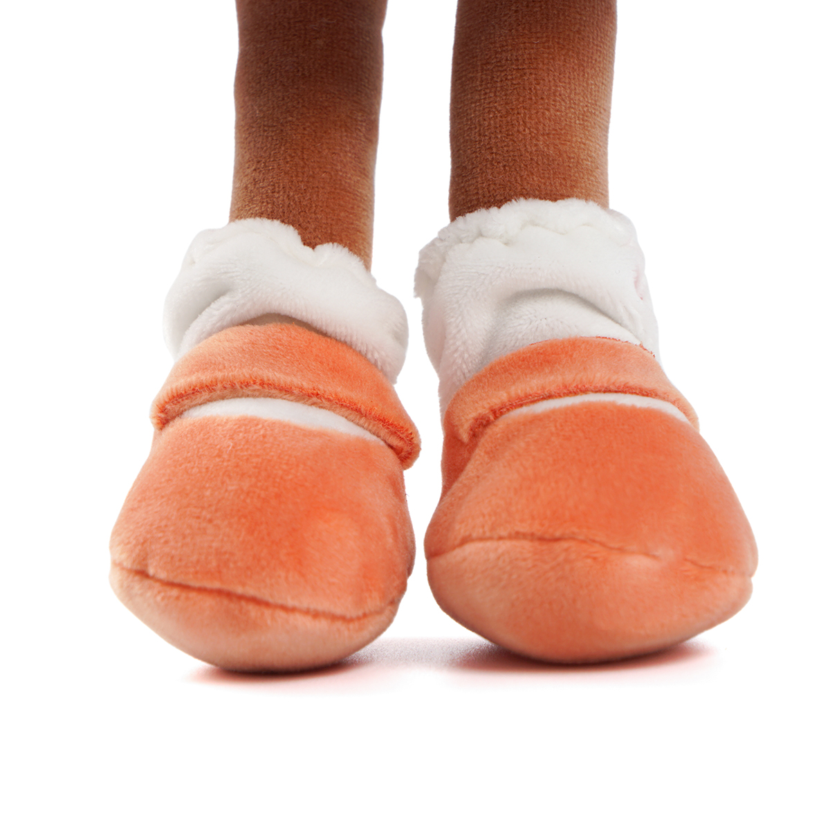 Carrot-colored plush soft shoes that matched with the same color deer dress.