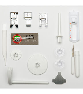 - Included Standard Accessories: Zig Zag Foot, Zipper Foot, Satin Stitch Foot, Automatic Buttonhole Foot, Spool Holders (1 each large and small), spool pin and Extra Spool Pin, Bobbins (class 15) x 4, Assorted Needle Set, Seam Ripper (Buttonhole Opener), Lint Brush, Screwdriver, Instruction Book, Warranty and Printed Inserts, Dust Cover, Foot Control, Power Cable