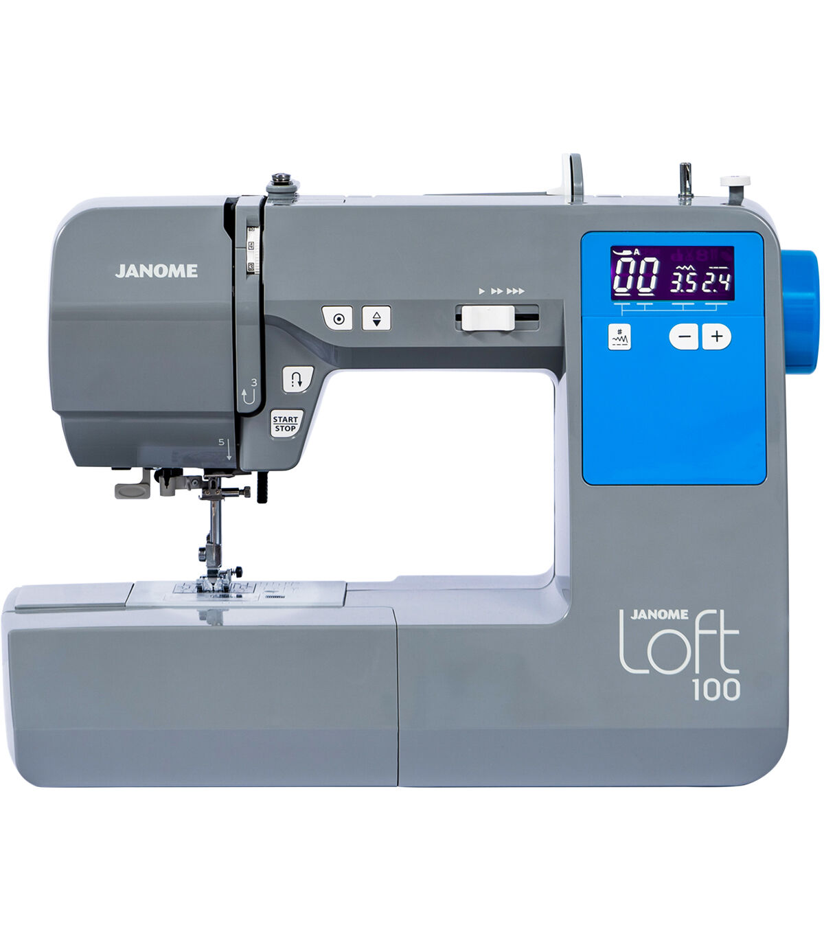 The Janome LOFT 100 is a versatile computerized sewing machine. The unique color and amazing features set this machine apart from the rest. The LOFT 100 is perfect to tackle your next creative sewing, or personal garment project. The machine’s cutting-edge technology ensures that projects are conquered with power, precision, and confidence. Utilize the Janome LOFT-100’s sewing machine’s built-in needle threader, presser foot lift, auto-declutch bobbin winder, and 7mm stitch width. The backlit LCD screen with easy navigation buttons makes choosing stitches a breeze. The Easy Convenience buttons are located right by the needle, you’ll find a start/stop button for sewing without the foot control and a reverse button. The Janome LOFT 100 advanced sewing machine features basic technology that is perfect for the beginner sewist but can handle a variety of tasks demanded by an experienced user. Stylize your lifestyle with the LOFT 100.