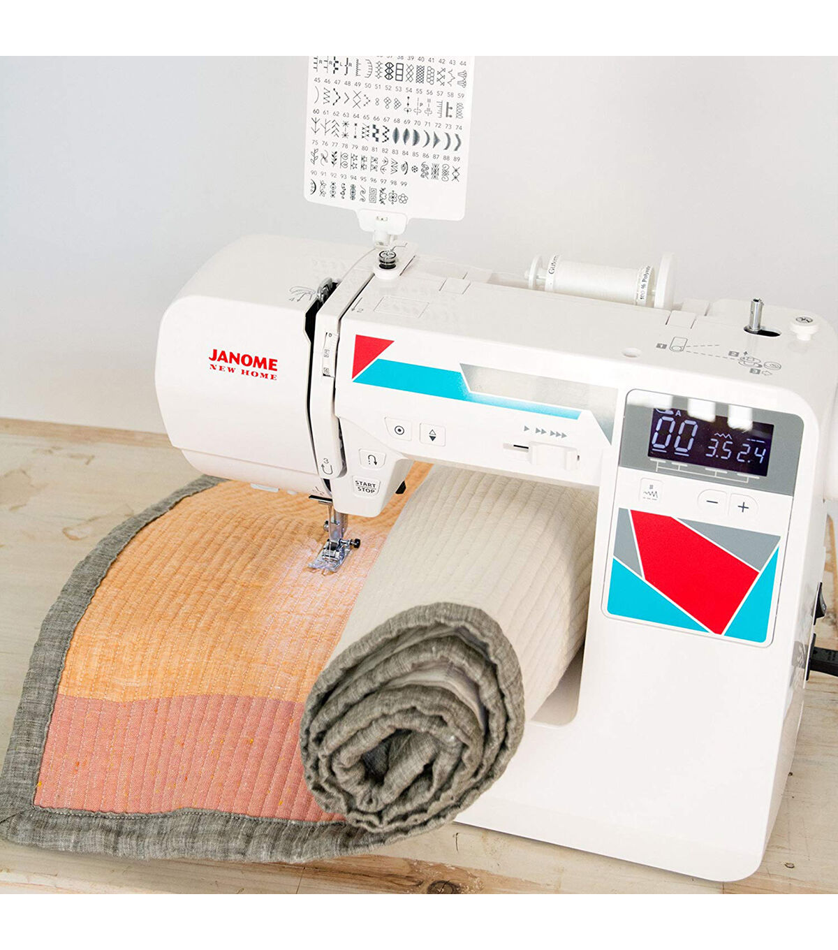 The Janome Mod-100Q Computerized Sewing Machine has 100 built-in stitches, including 7 one-step buttonholes, making it the perfect tool for you to utilize your creative abilities. Get a fresh start on sewing modern garments, home decor and quilts. All seven products in the MOD line ensure that your projects are conquered with power, precision and confidence. Convenience Features like the start/stop button, easy reverse lever and locking stitch ensure that your projects are completed with ease. Professional-level features like the 7-piece feed dog system and the specialty needle plate allow you to produce precise results. Four presser feet and more accessories ensure that you have all the tools you need to get stitching!